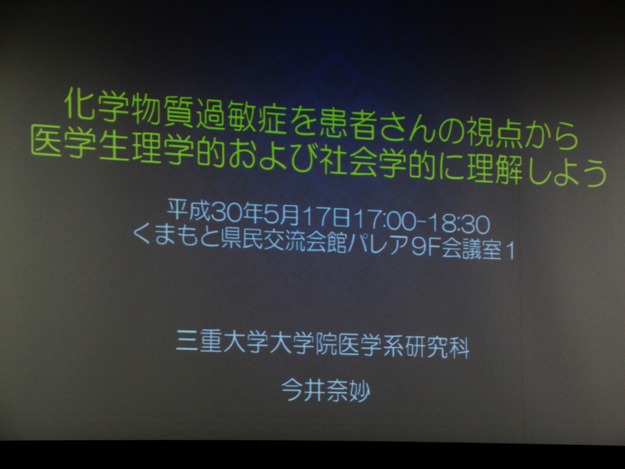 今日は、日本産業衛生学会アレルギー免疫毒性研究会 ~ 自由集会の講師は三重大看護の今井先生!!