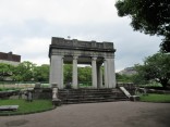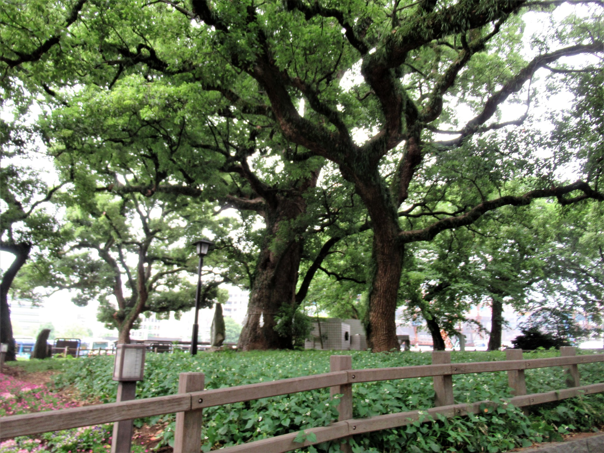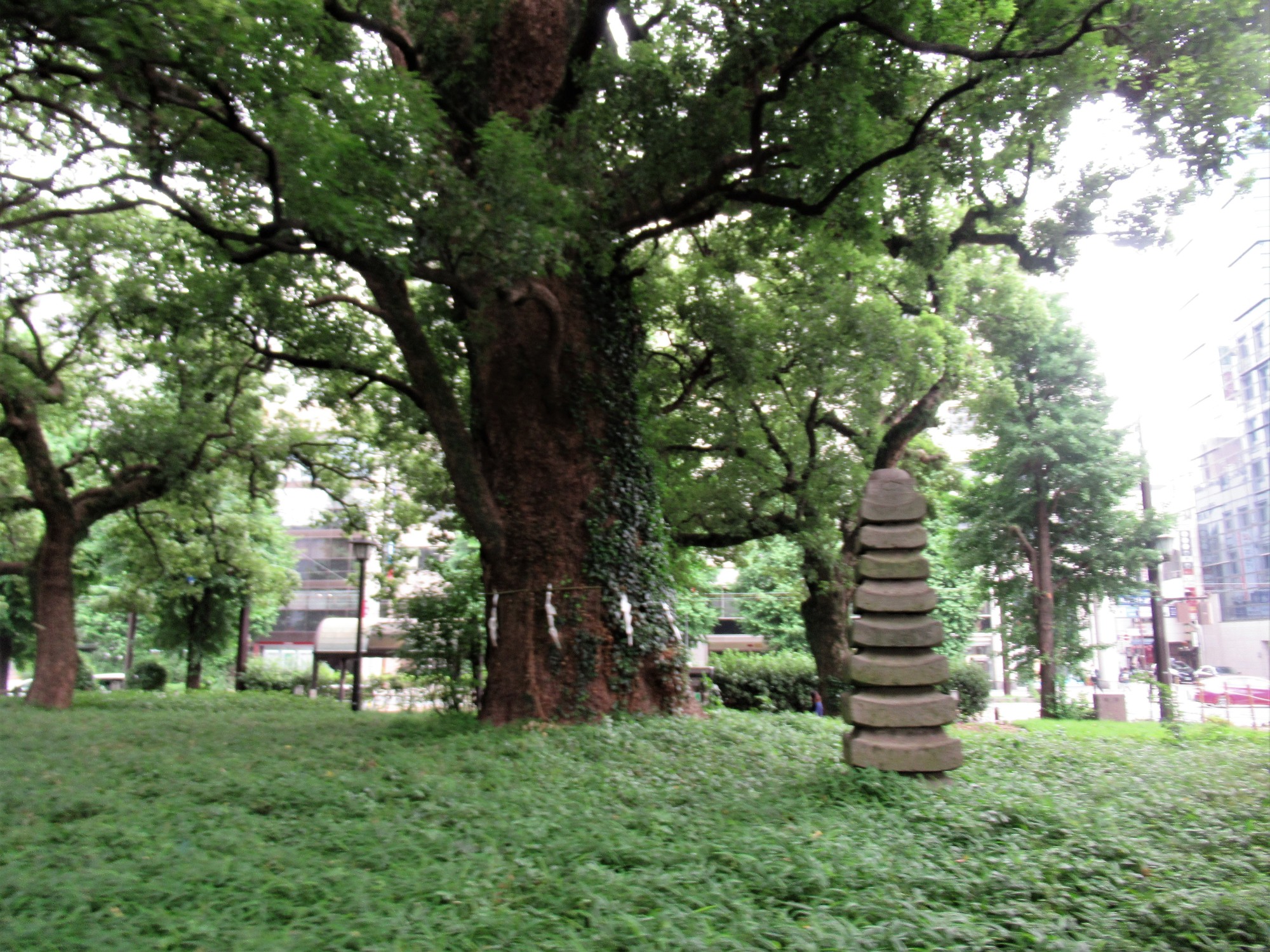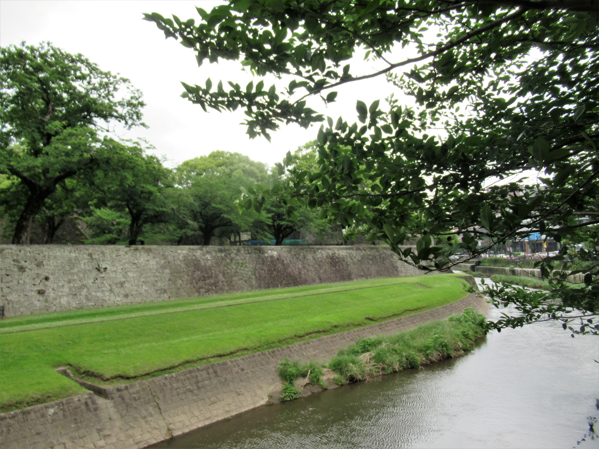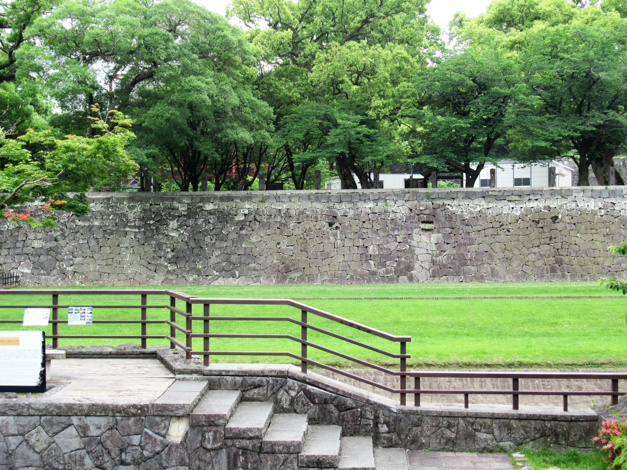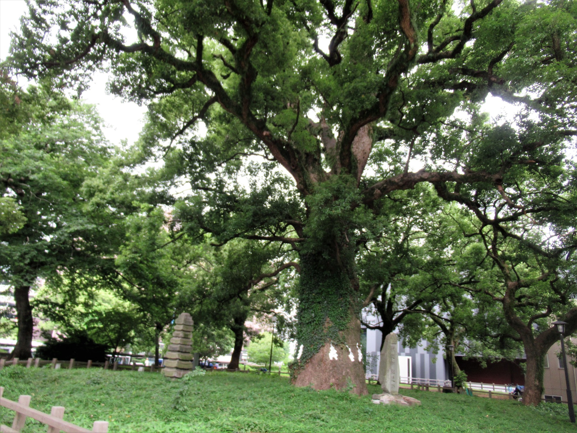 道路を挟んで向かい側には【熊本城を囲むように流れる坪井川沿い、千葉城橋と厩橋の間に位置する高橋公園は、戦前の第六師団長官舎跡地で、熊本市の第7代市長で市電の開通や水道の敷設など、熊本市発展の基礎をつくった高橋守雄を記念して造られた公園です】…が。