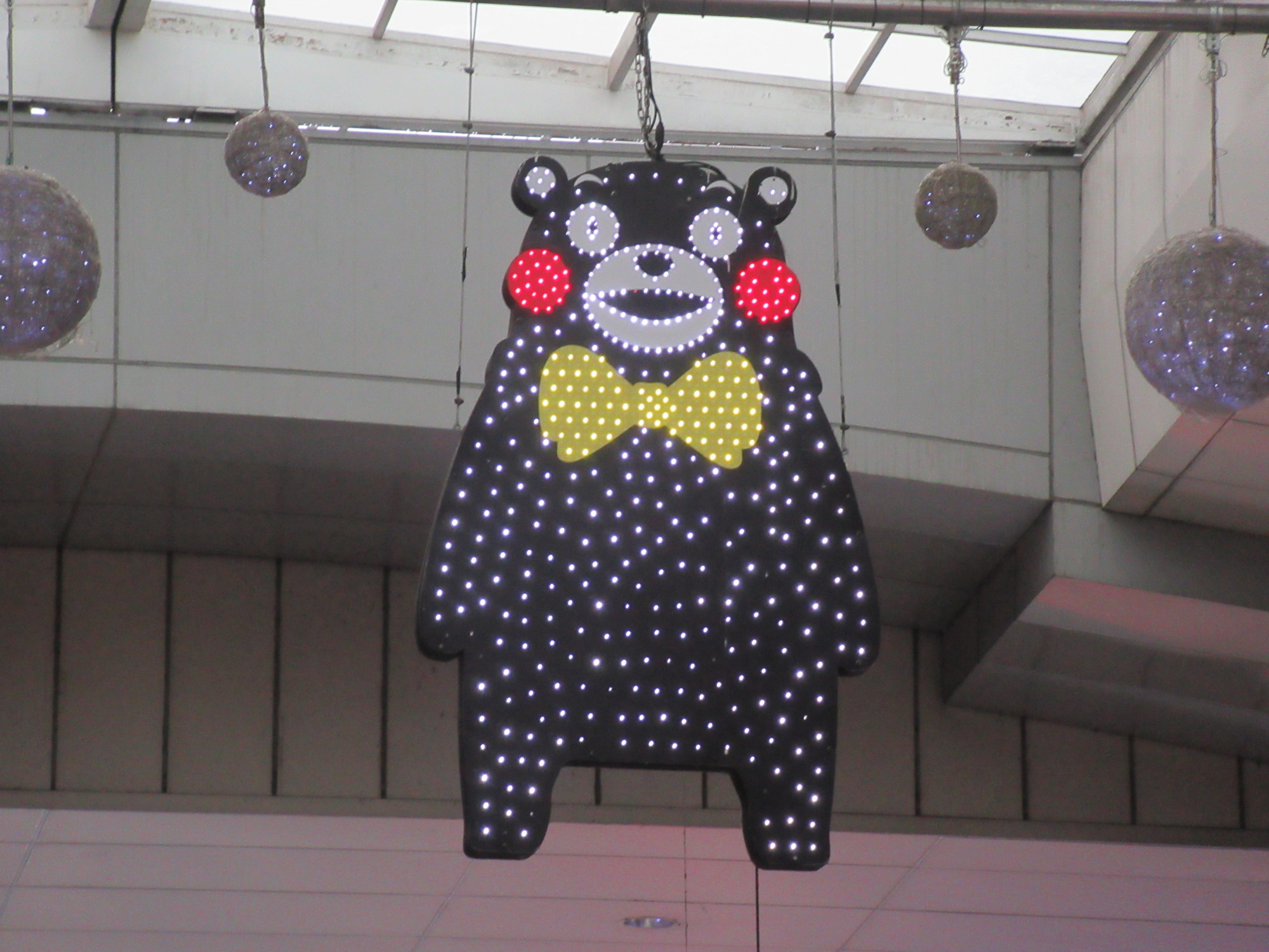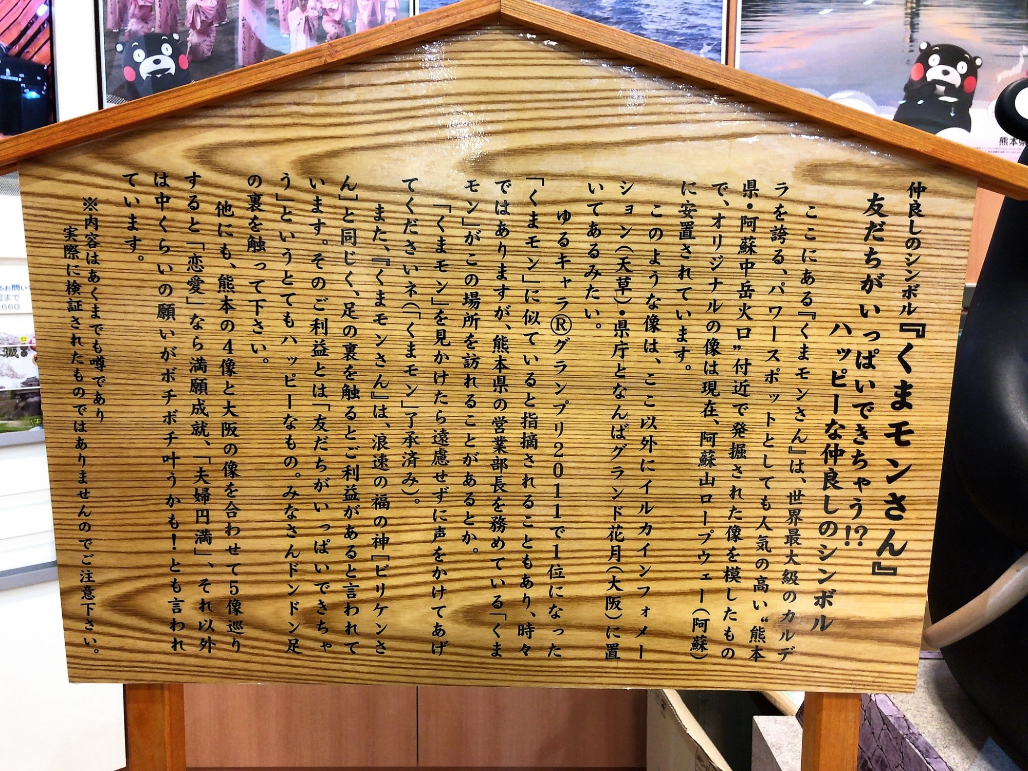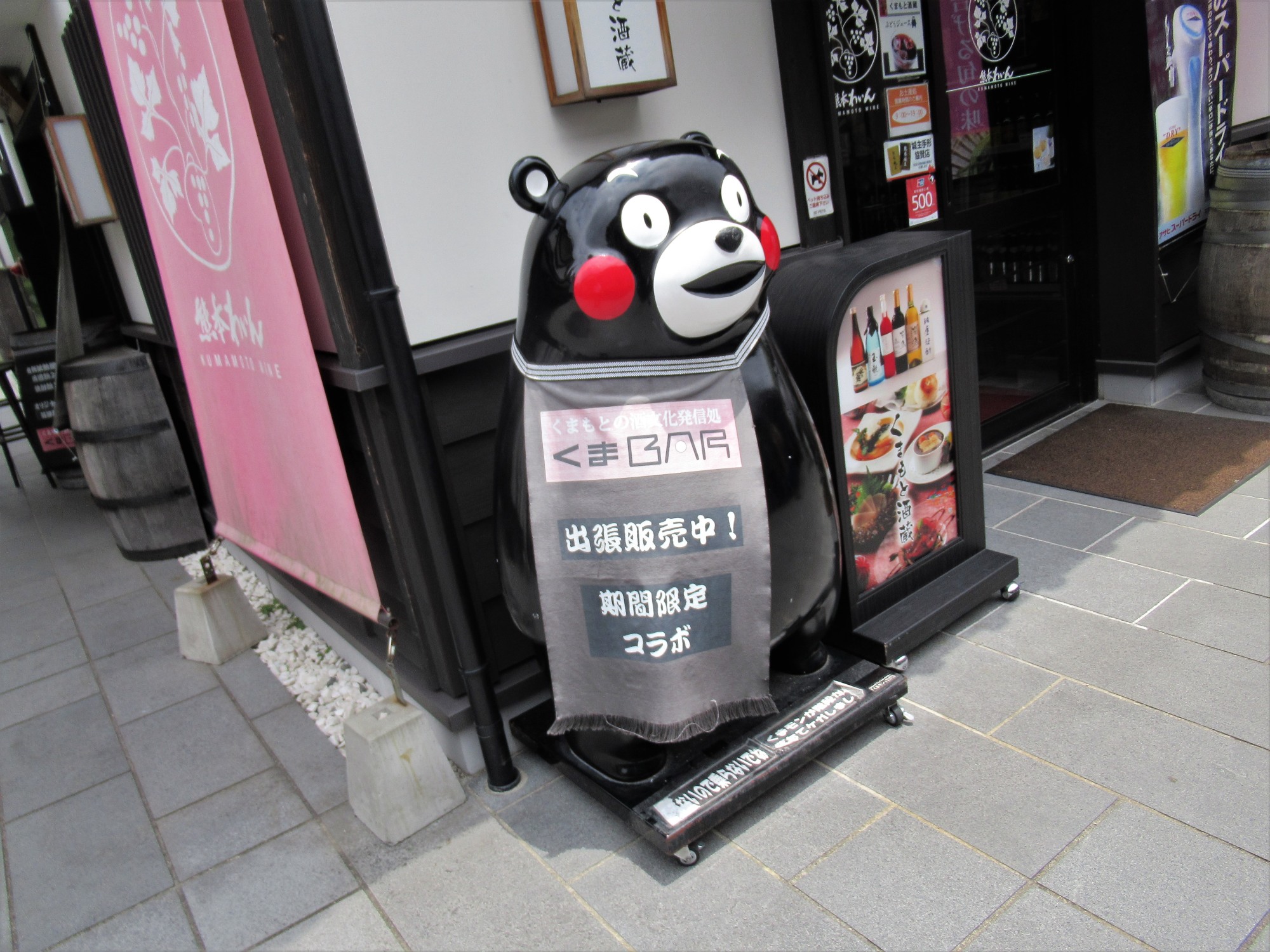 さて、降りてきて~お土産物屋さんなどが立ち並ぶエリアには、くまモン!