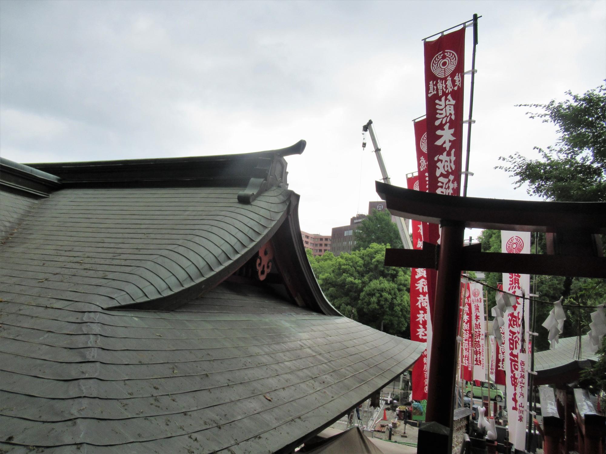 熊本城には入れません(復旧工事中)、なので、外回りをぐるりと・・・稲荷神社です。