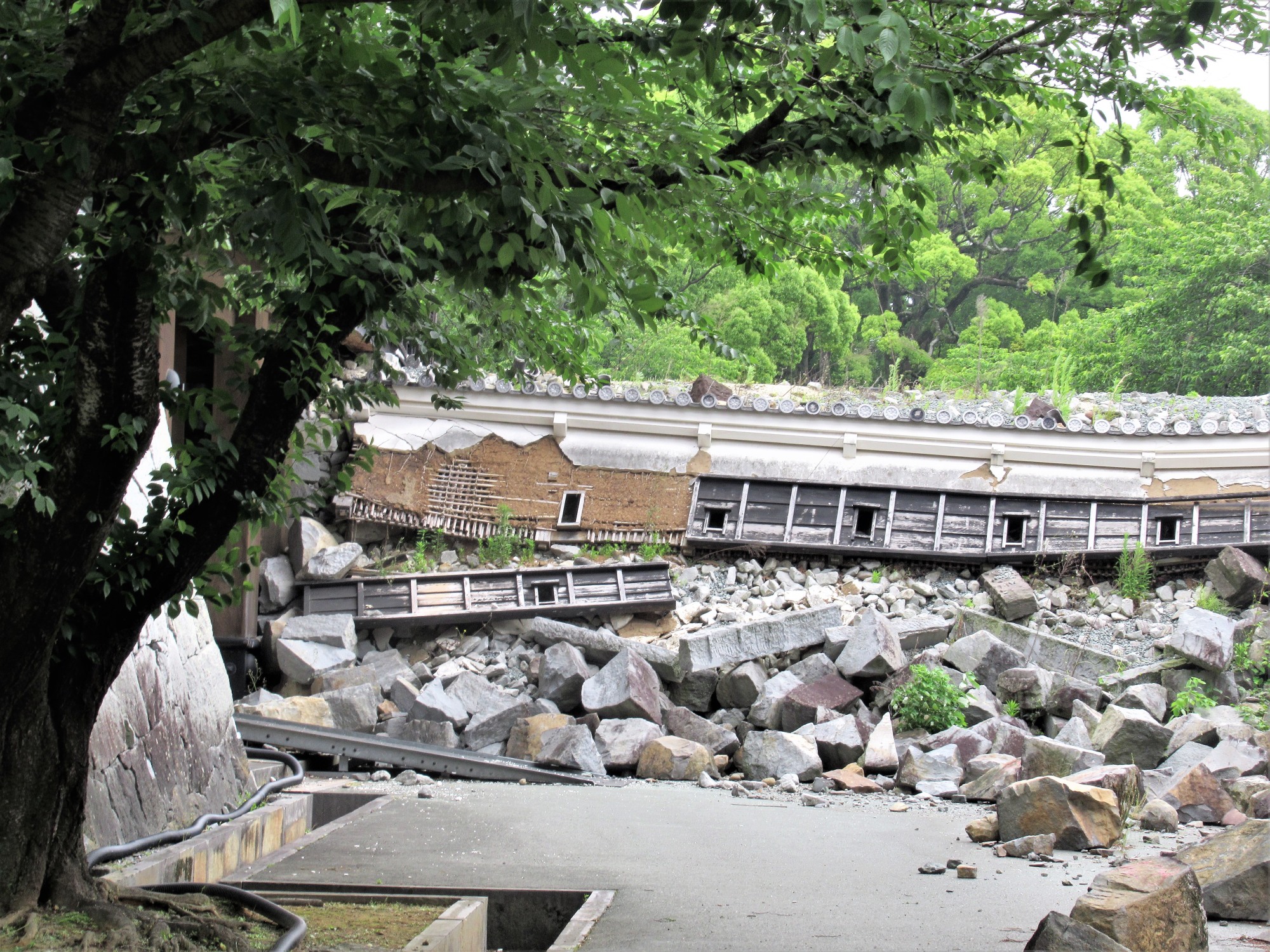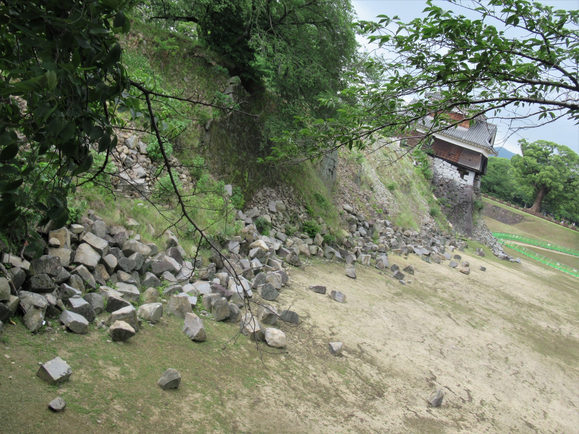 さて、この辺りから、お城をぐるりと回るのですが・・・地震の傷跡が。。。まずは、入城禁止です!