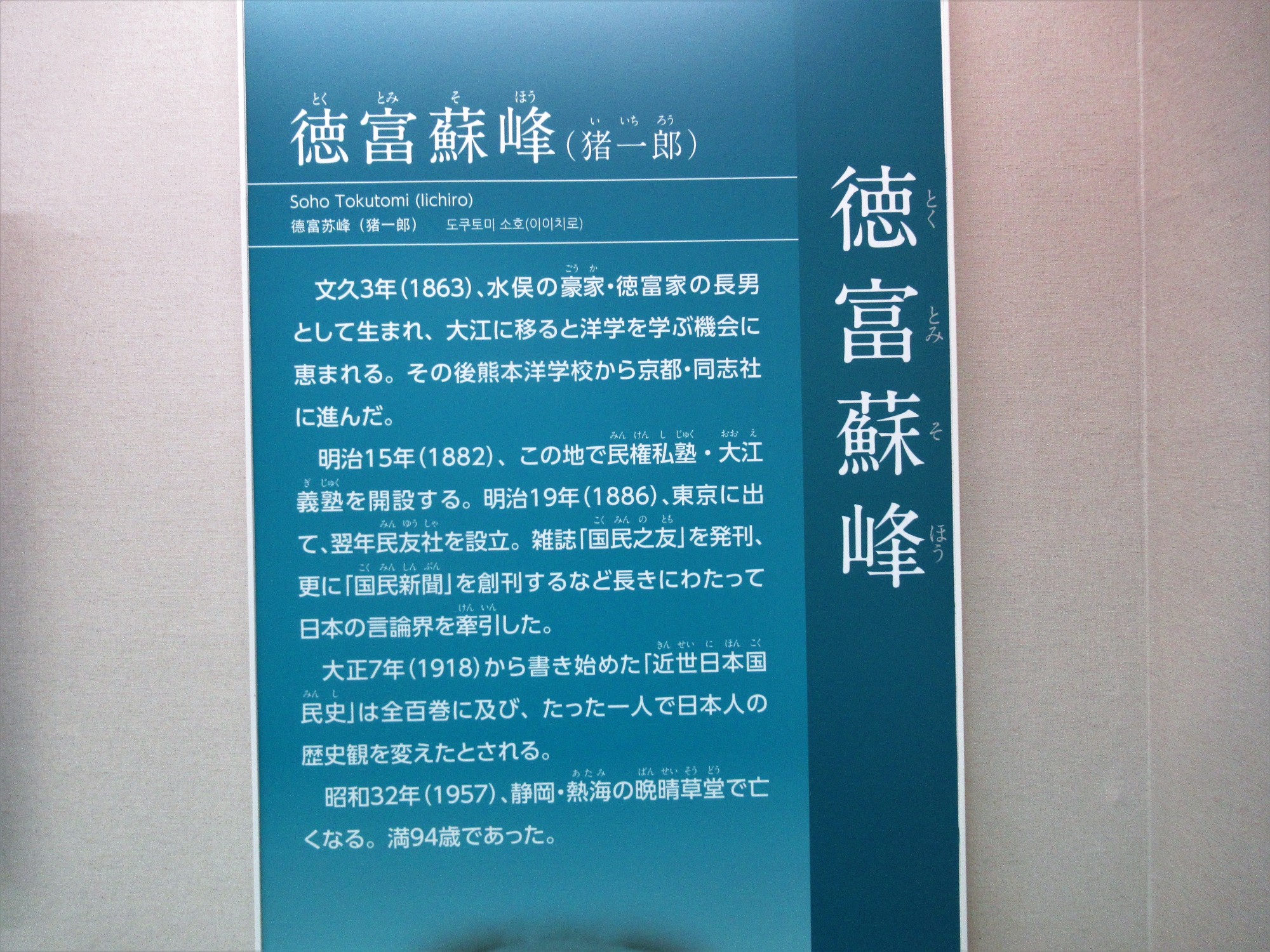 ありがとうございます。そういえば、数年前に水俣に行った時も「徳富」の看板が~どうも兄弟の父の図書の寄贈の館があるそうです。