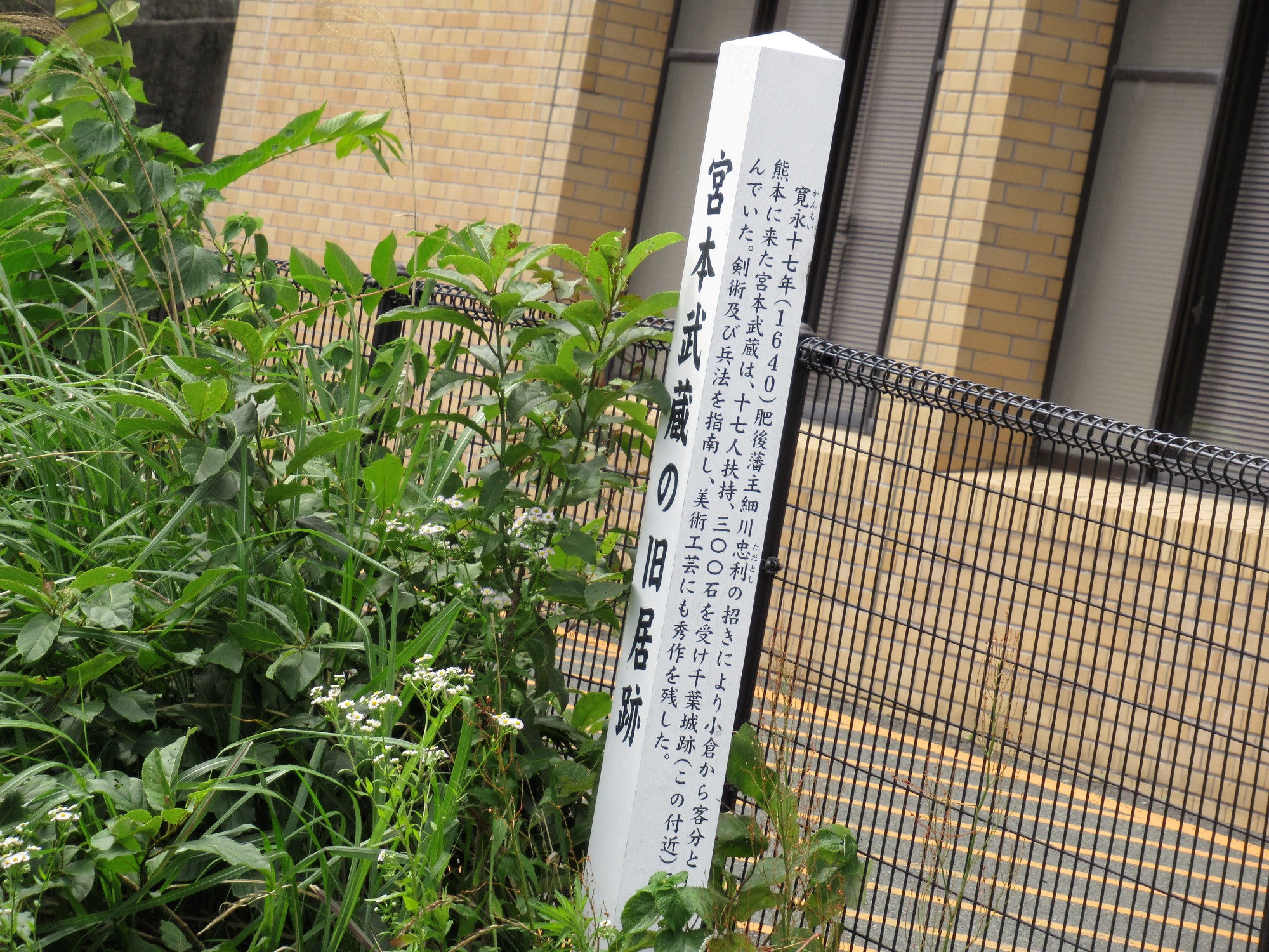 宮本武蔵の旧居跡は……川沿いに案内板が立っているだけですが。
