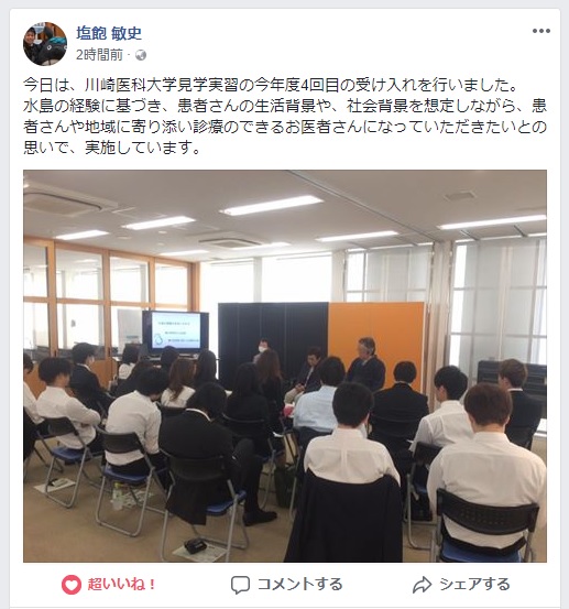 「みずしま財団」さんへの見学・実習の容子が、担当の藤原さん・塩飽さんのFBにアップされています。