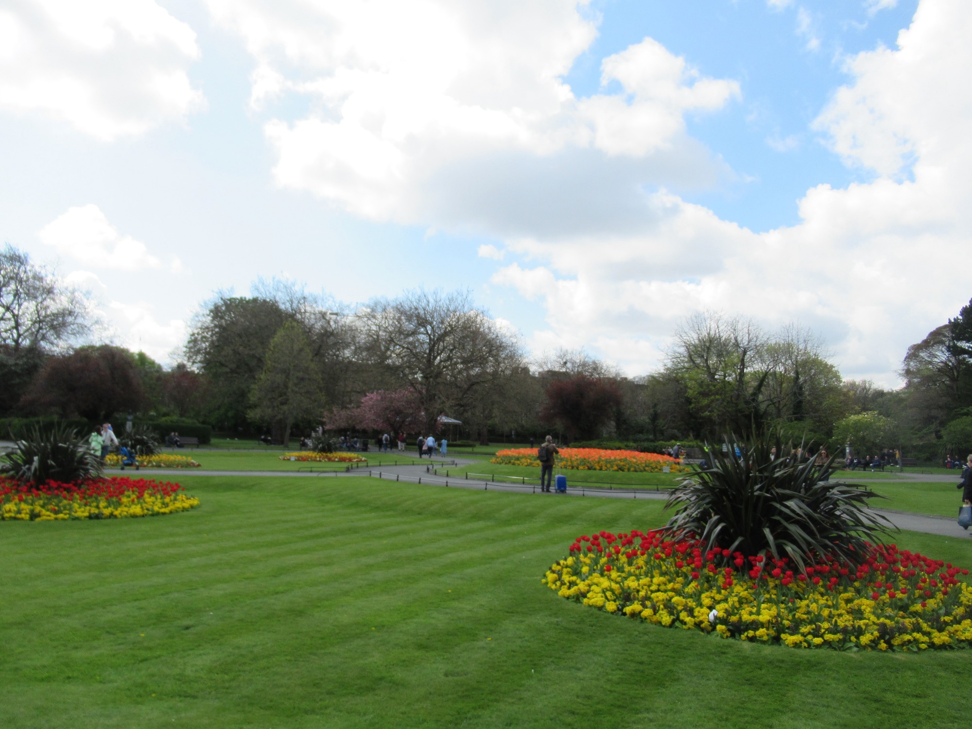続いて、Stephen's Green 1663 です。広くって、緑と八重桜が一杯の公園、花壇の花々もきれい!