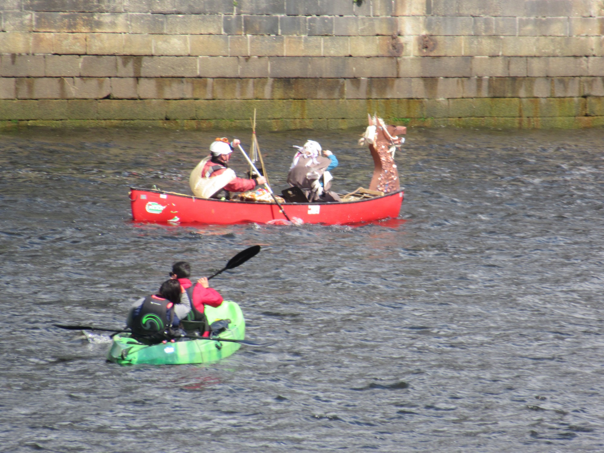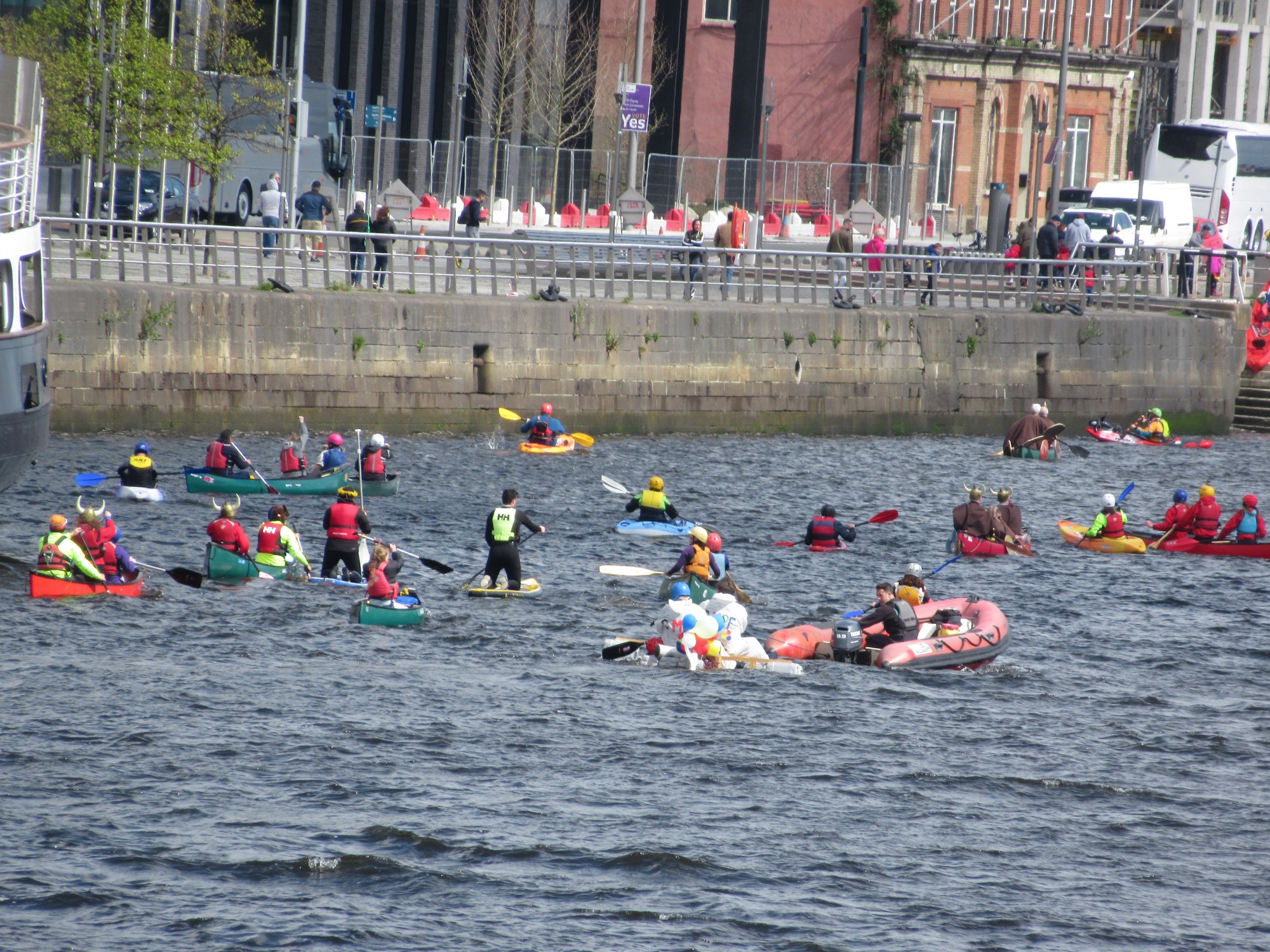 会員総会に向かう時、Liffey川ではカヌー競技が開かれていました。