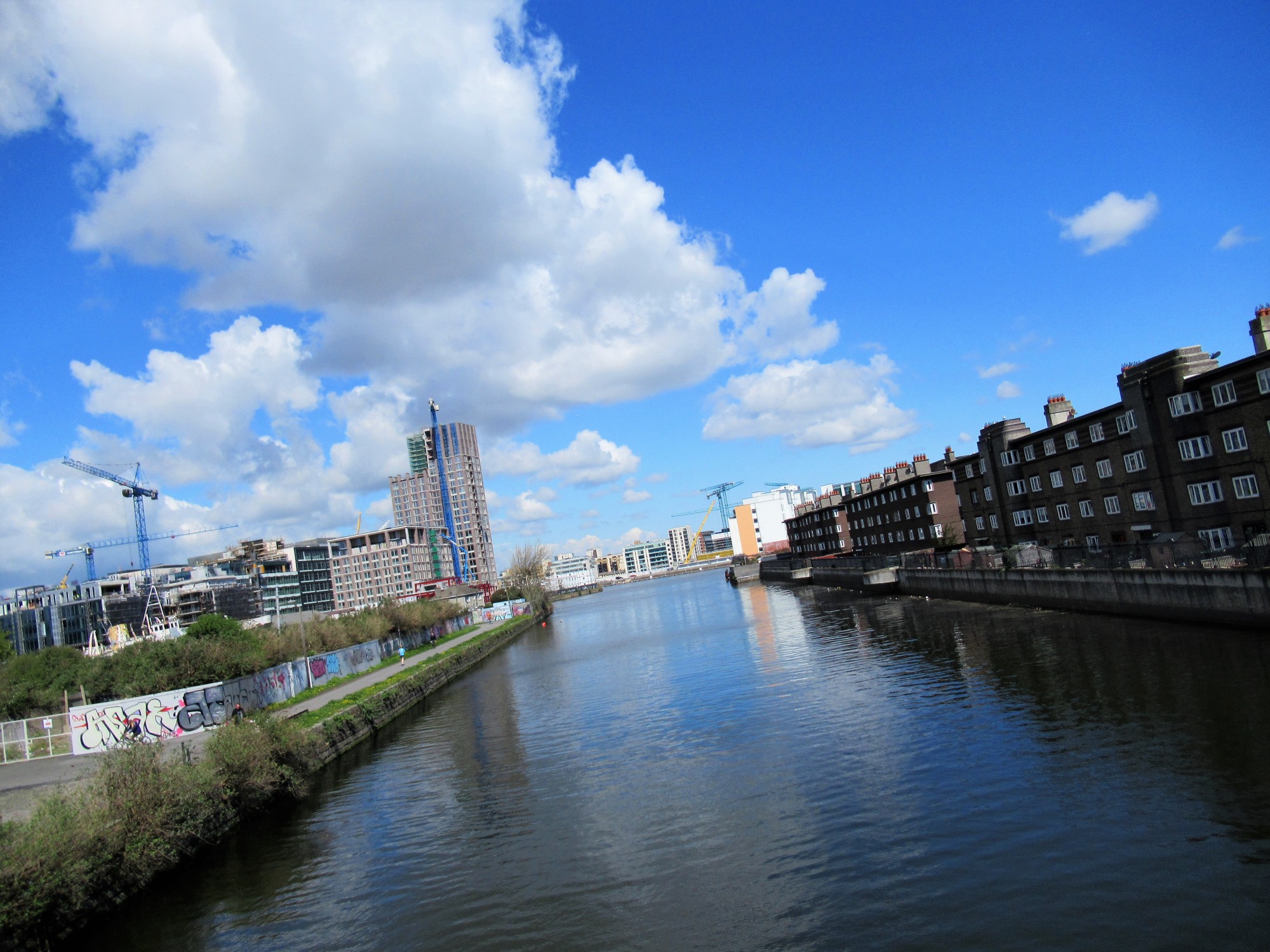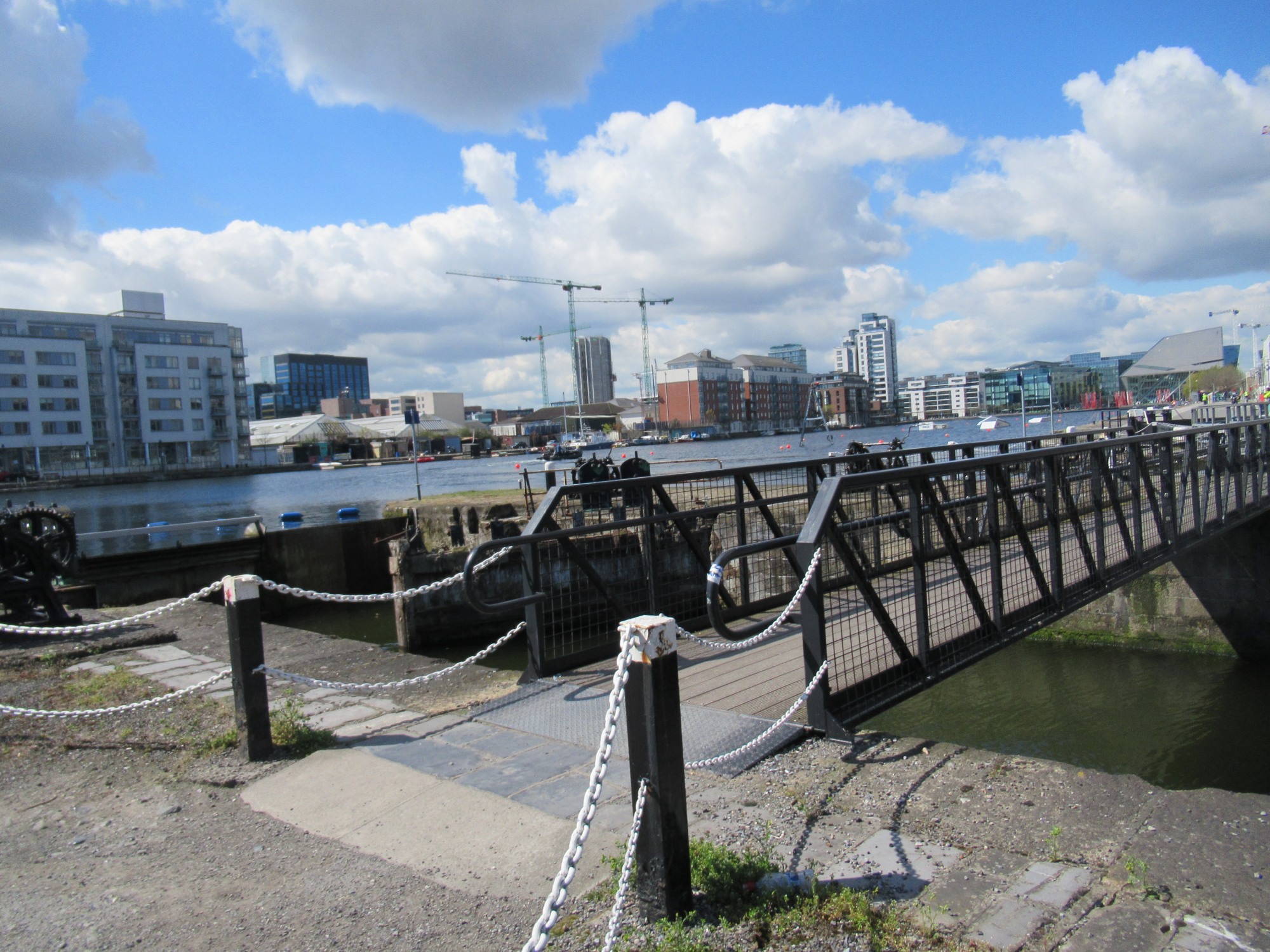 さて、運河がLiffey川に通じるところを越えて・・・ウォーターフロントの様な処へ!