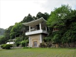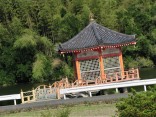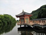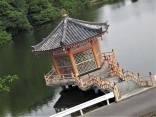 【天王池に浮かぶ朱色の浮見堂。龍頭観世音菩薩が祀られている】