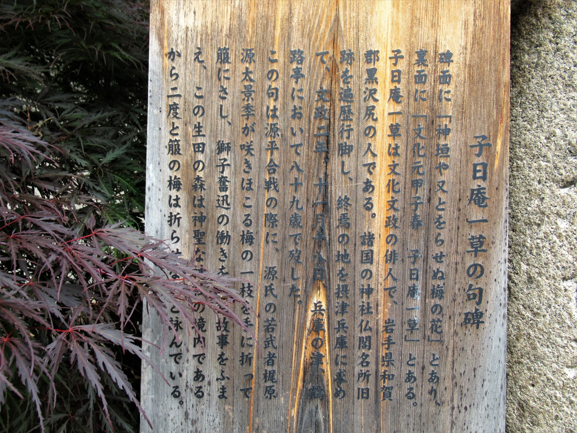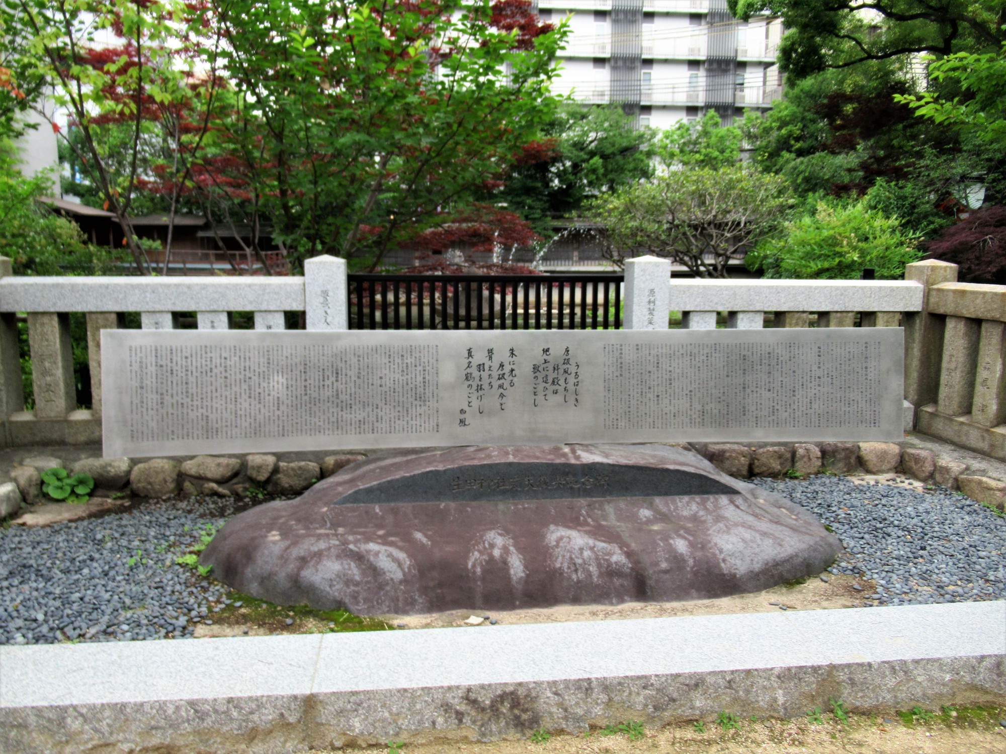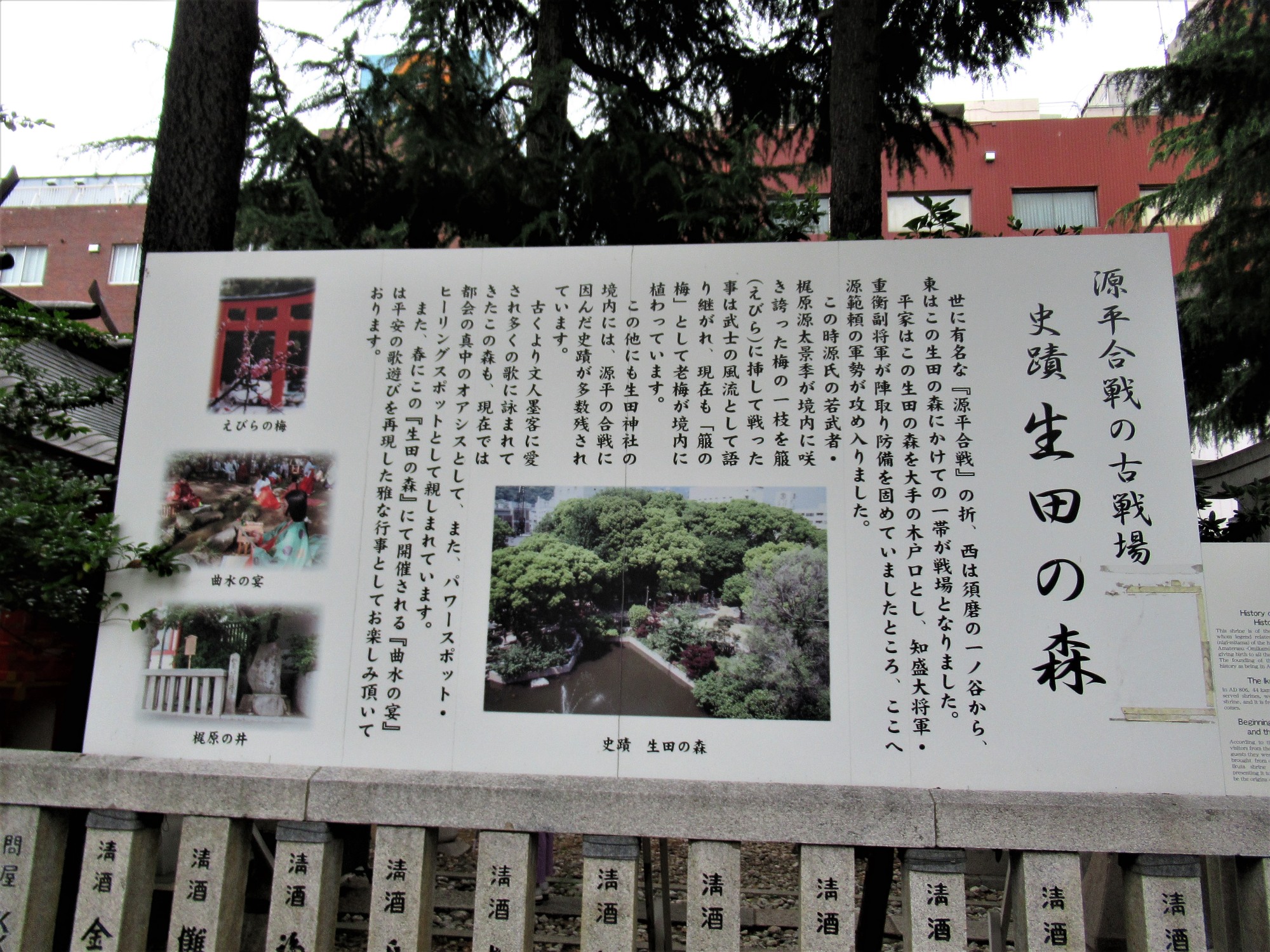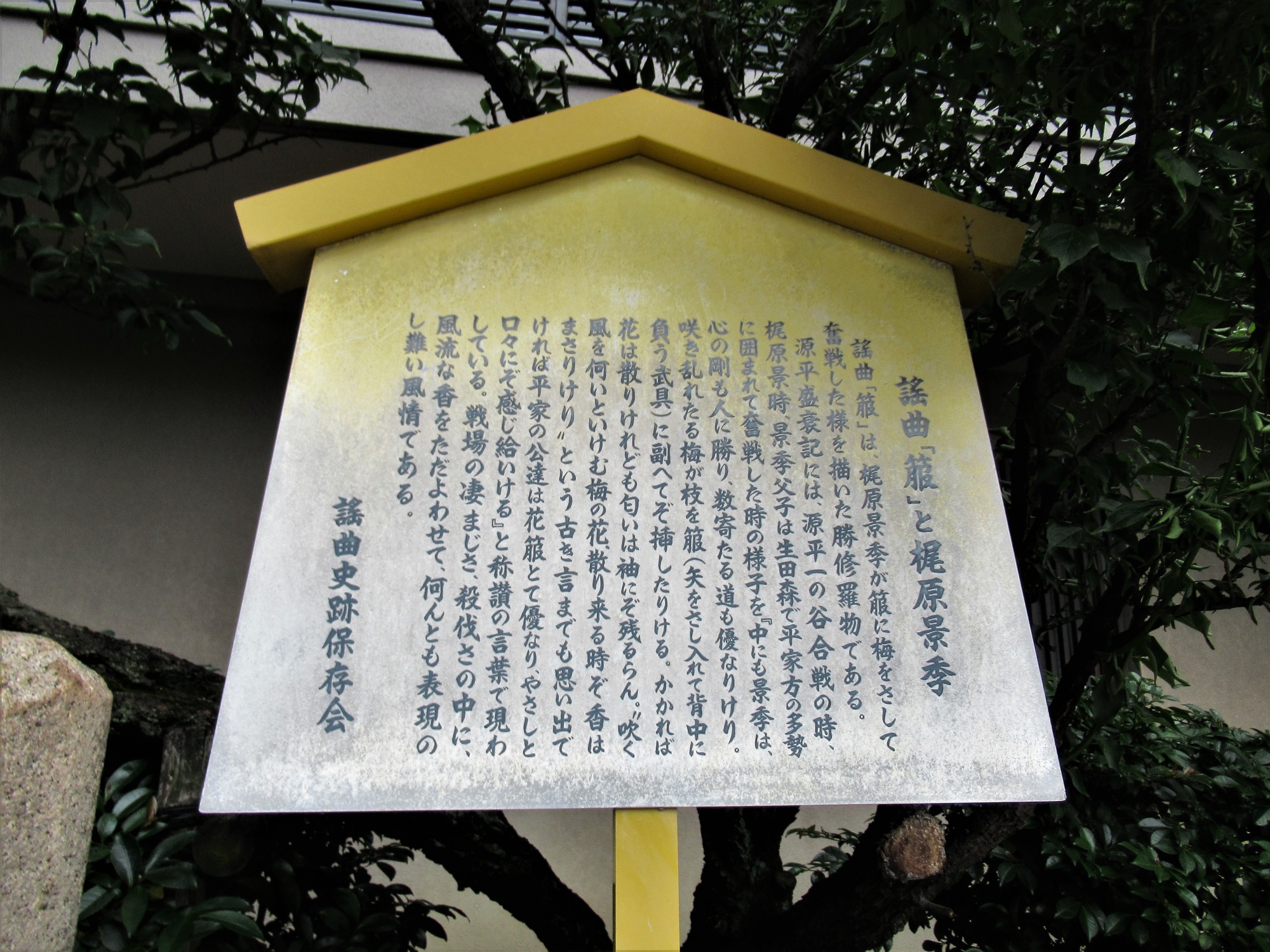 【平安末期、寿永3年(西暦1184年)2月の源範頼の率いる源氏方と平知盛の率いる平家方の戦「源平の合戦」であり、源氏側の武将、梶原源太景季が箙に境内の梅の一枝を射し戦ったという風流武士の逸話があります。また、室町時代以前の南北朝争乱では、楠木正成・新田義貞軍の南朝方と足利尊氏軍の北朝方との合戦地となり、戦国時代には、織田信長軍と西隣にある花隈城主荒木村重軍との合戦地にもなりました。】とのことです。