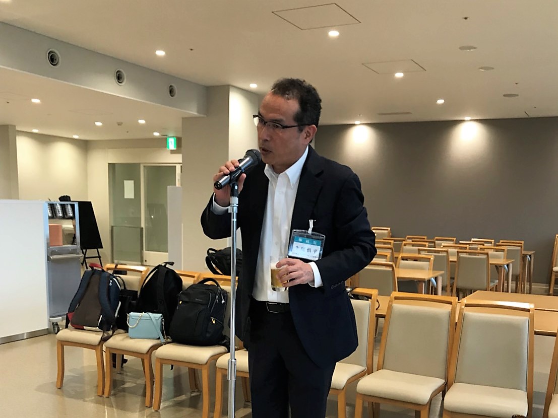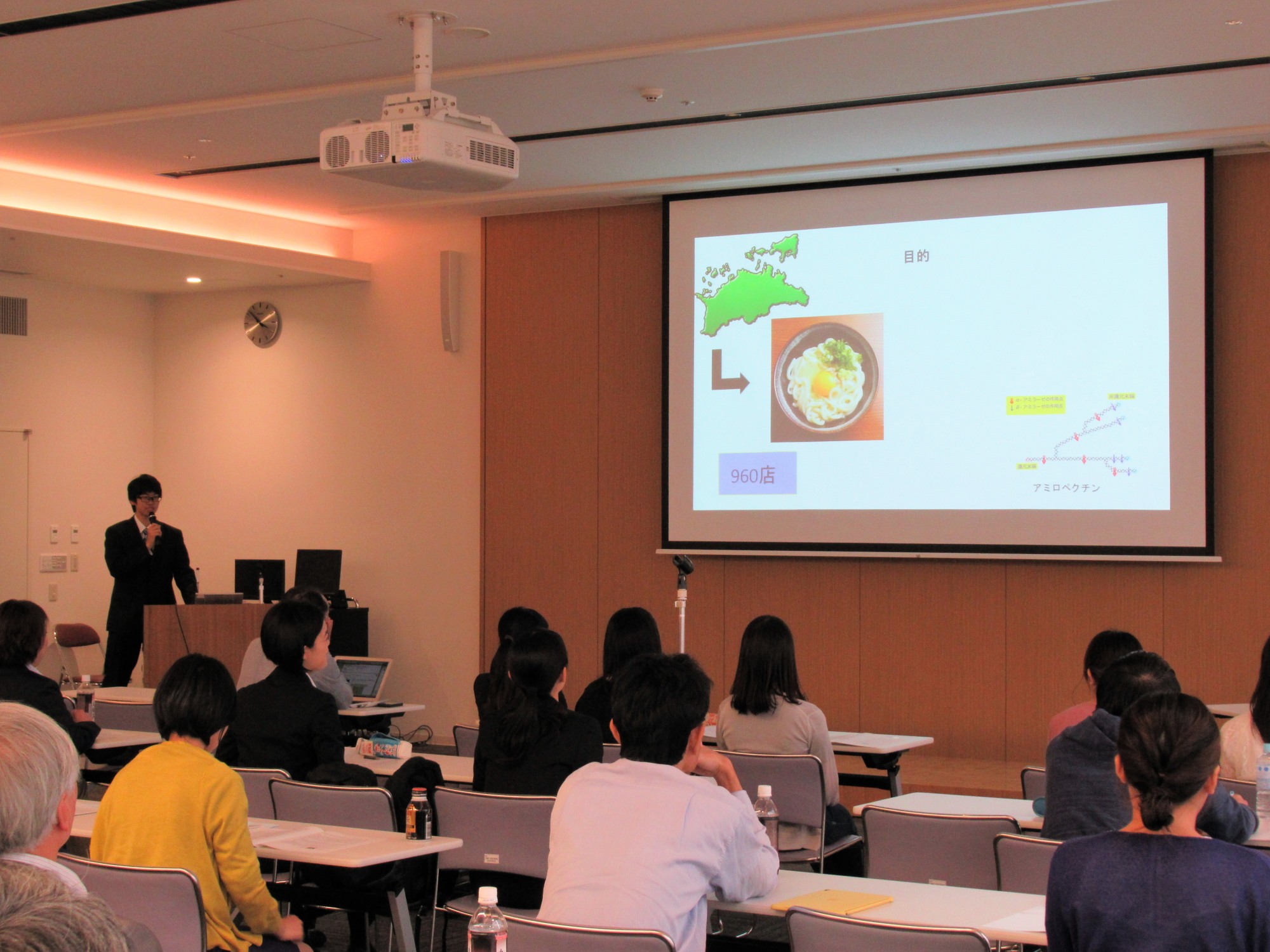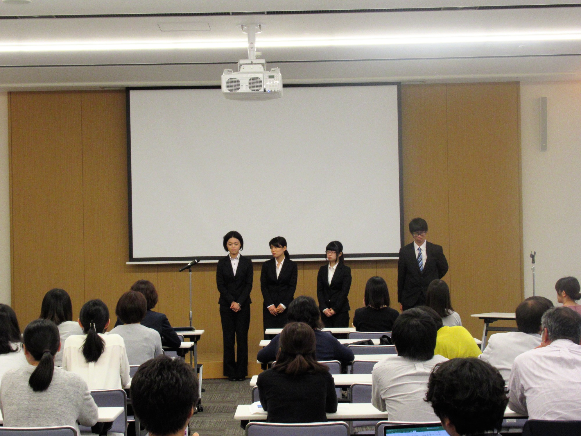 司会を倉敷芸術科学大学の大杉先生にバトンタッチ(今回の学生プレゼンテーションの担当)~4名の学生さんのプレゼンです。