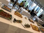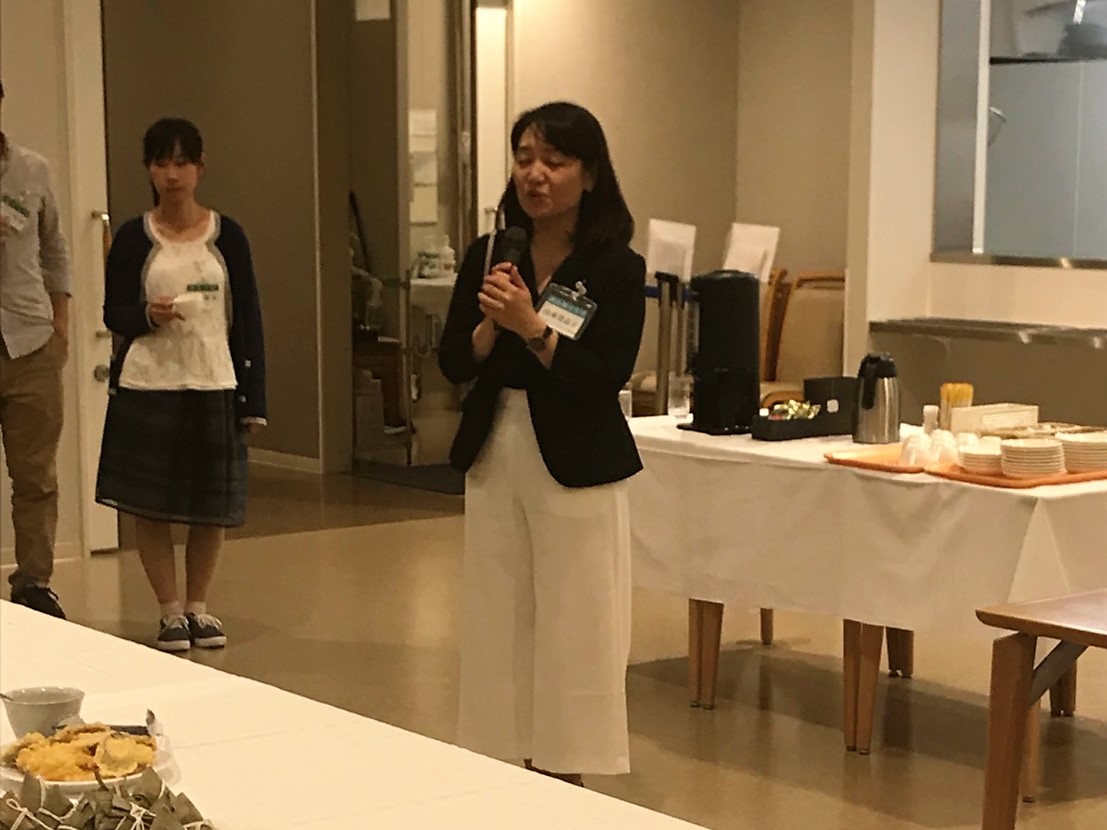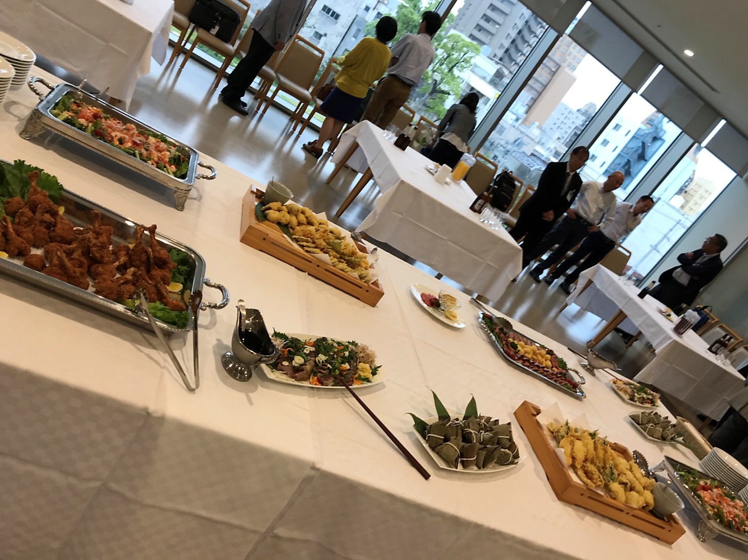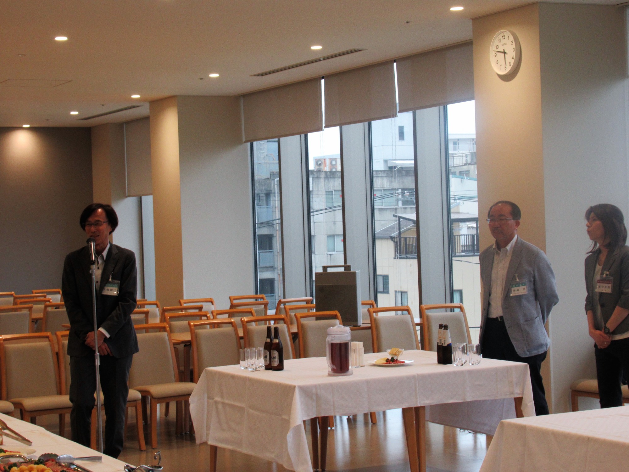記念ホールの一階上は、dining garden というレストランで、そこの職員食堂エリアで、懇親会です!