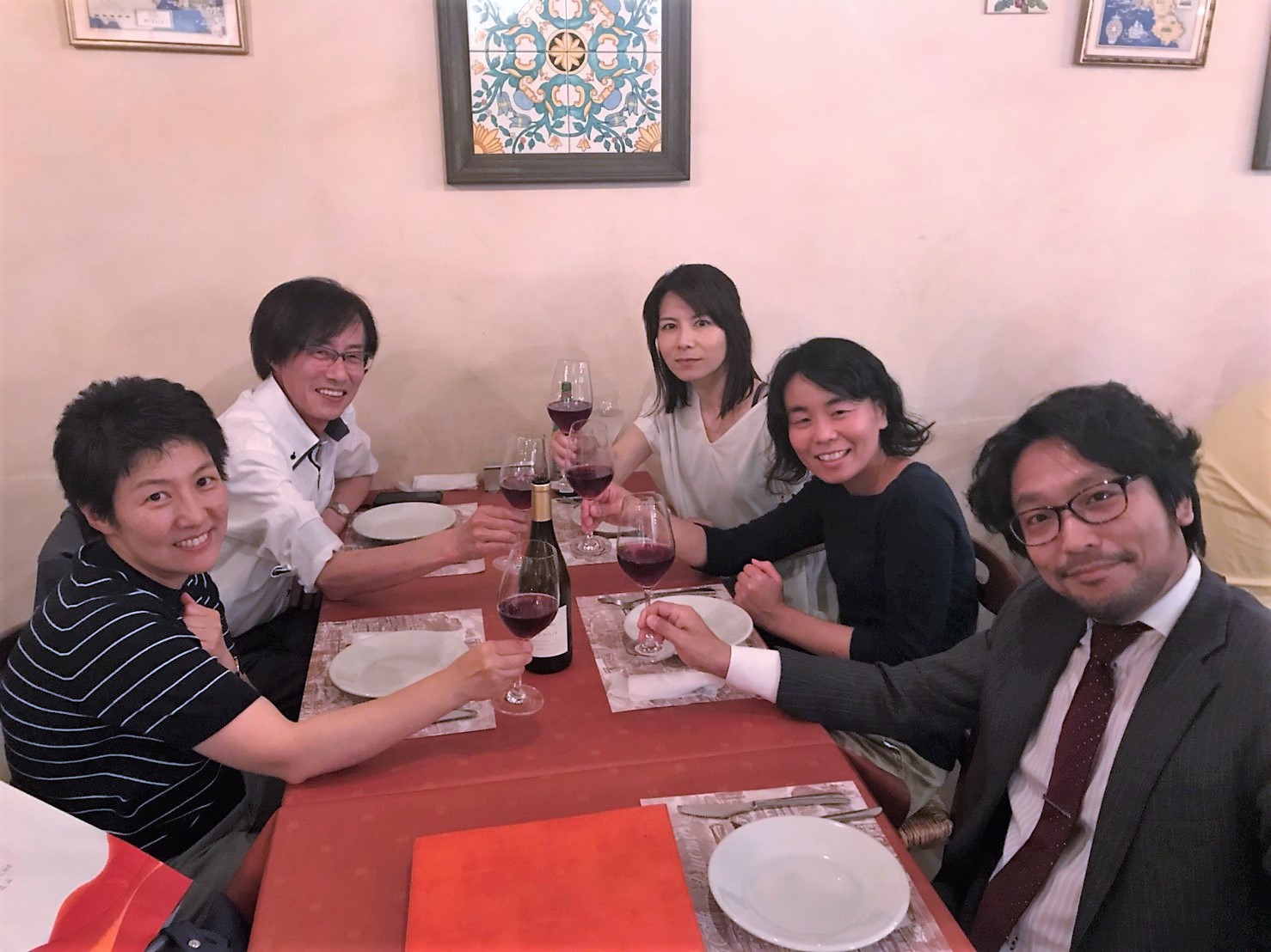 終了後、遠方からのお役様を招待だったのですが、角先生は所用で日帰り、堀中先生と衛生学メンバー(OGの前田先生も)