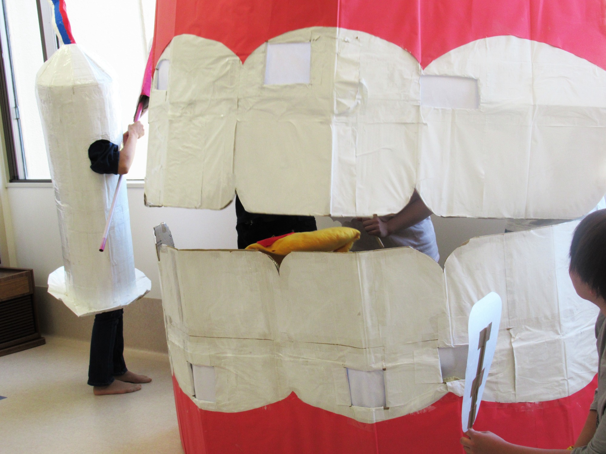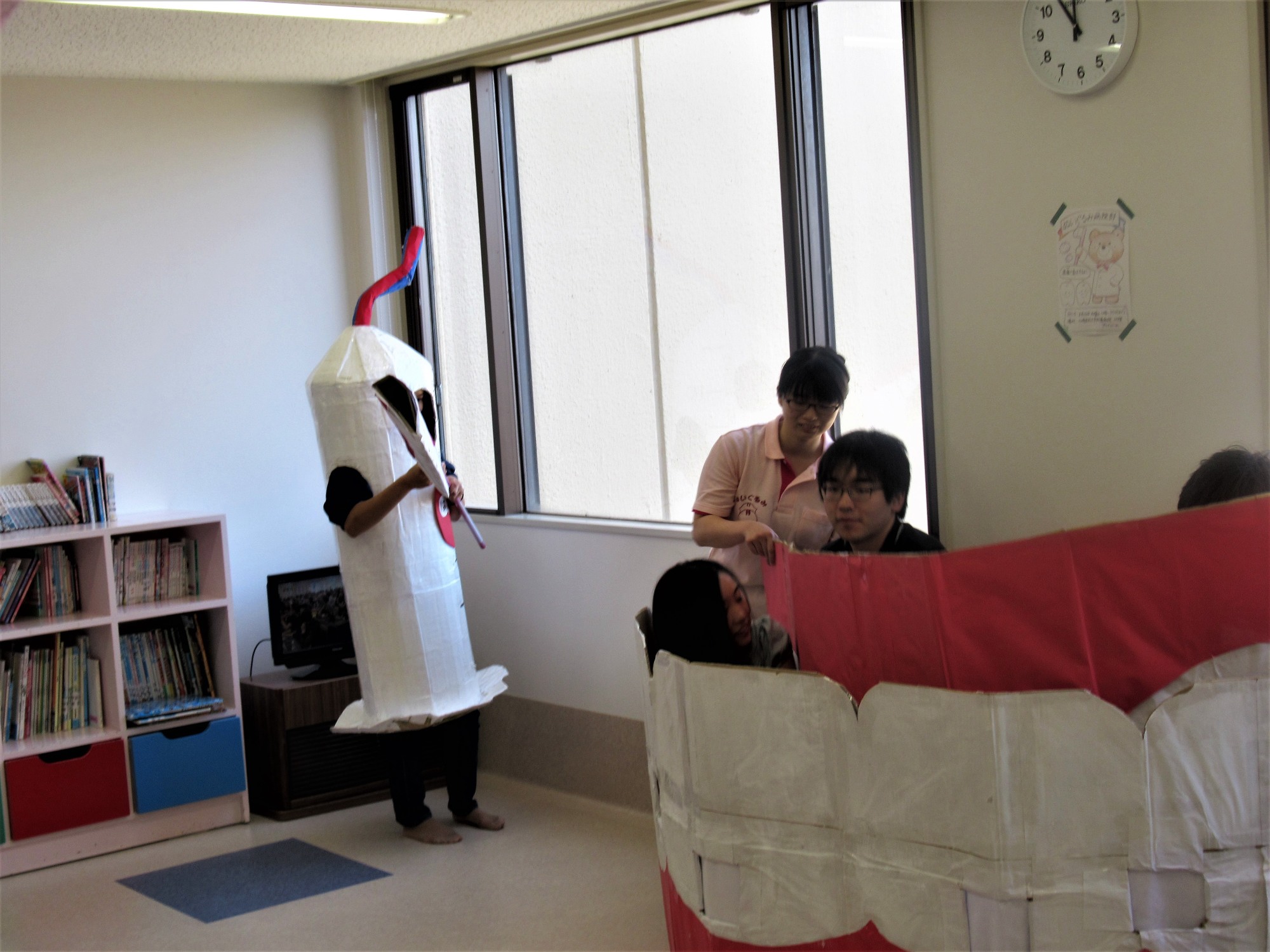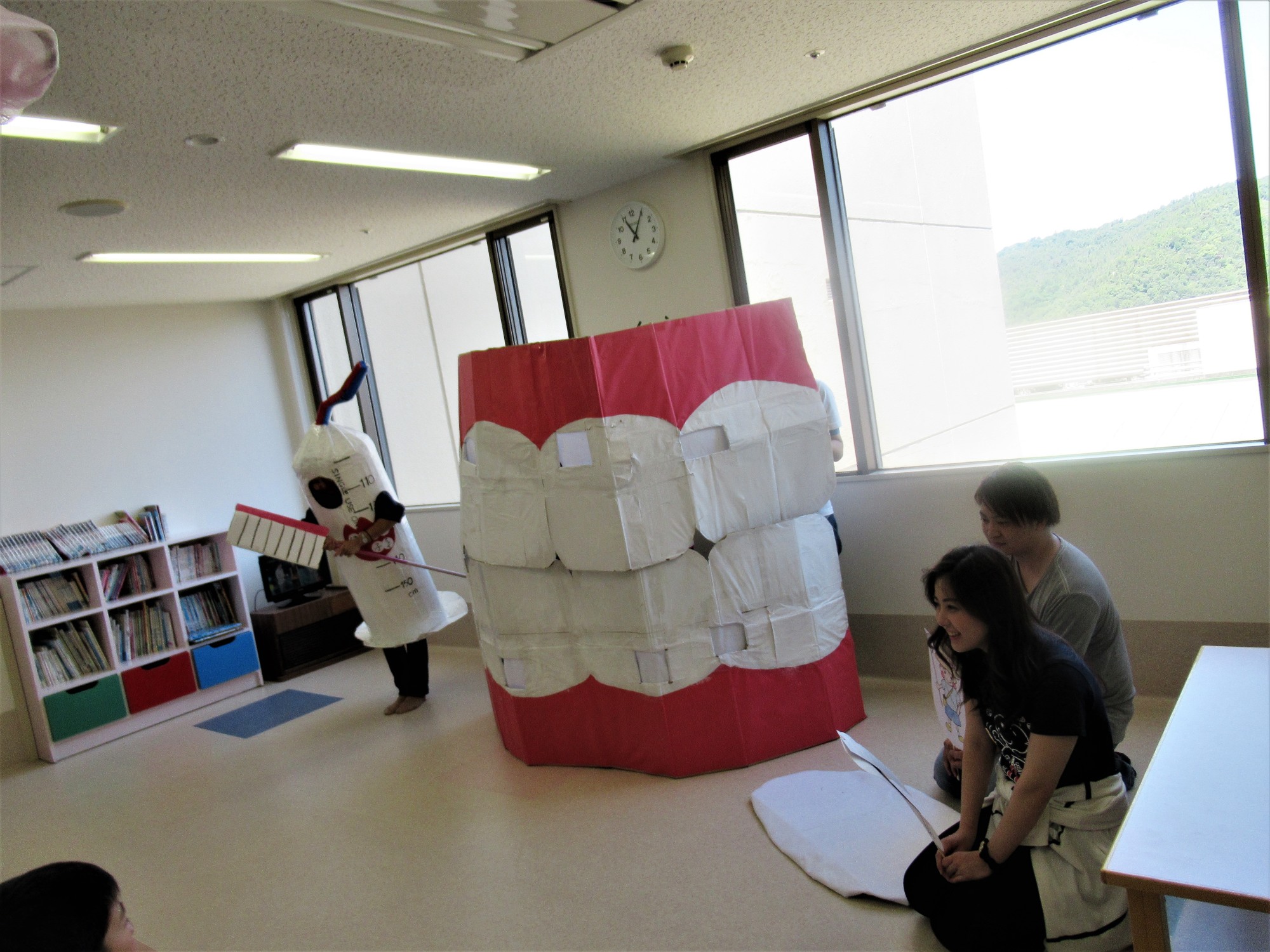 名ばかりの顧問をしている部活動「ぬいぐるみ病院」が、12Fの小児病棟のプレイルームで「はみがき劇」