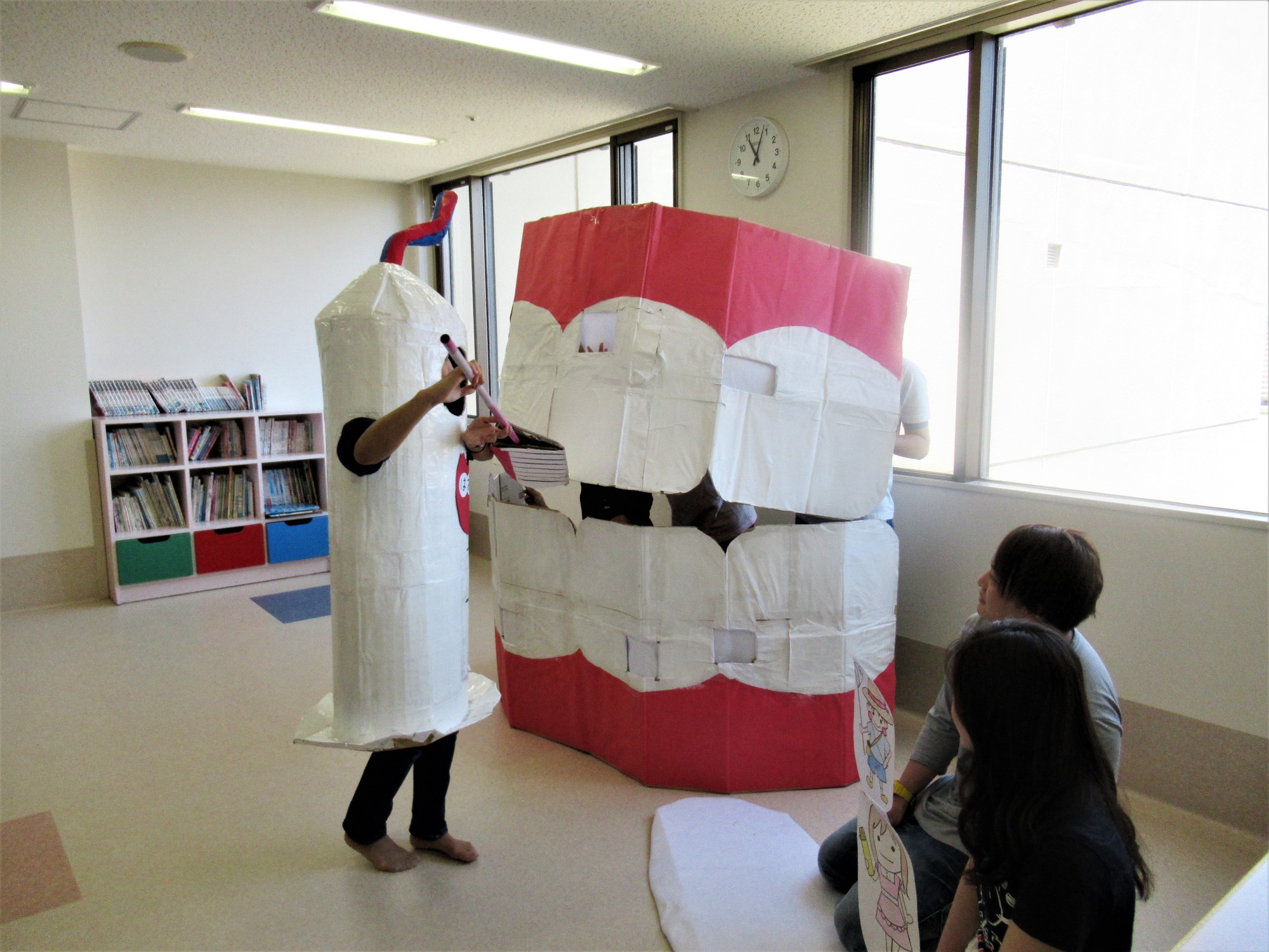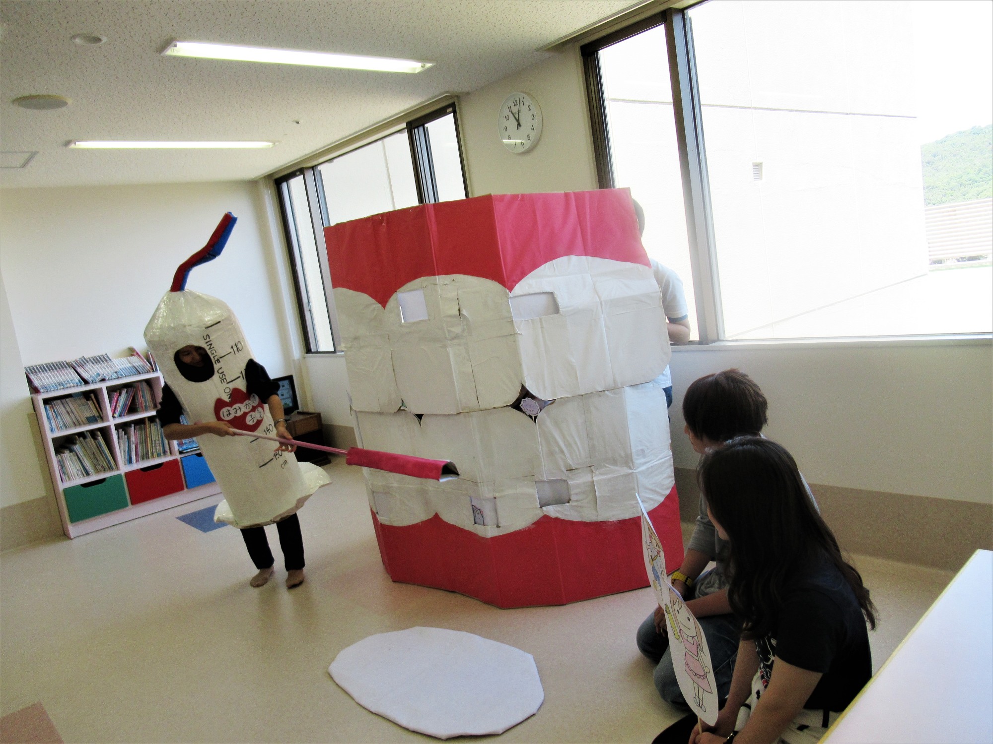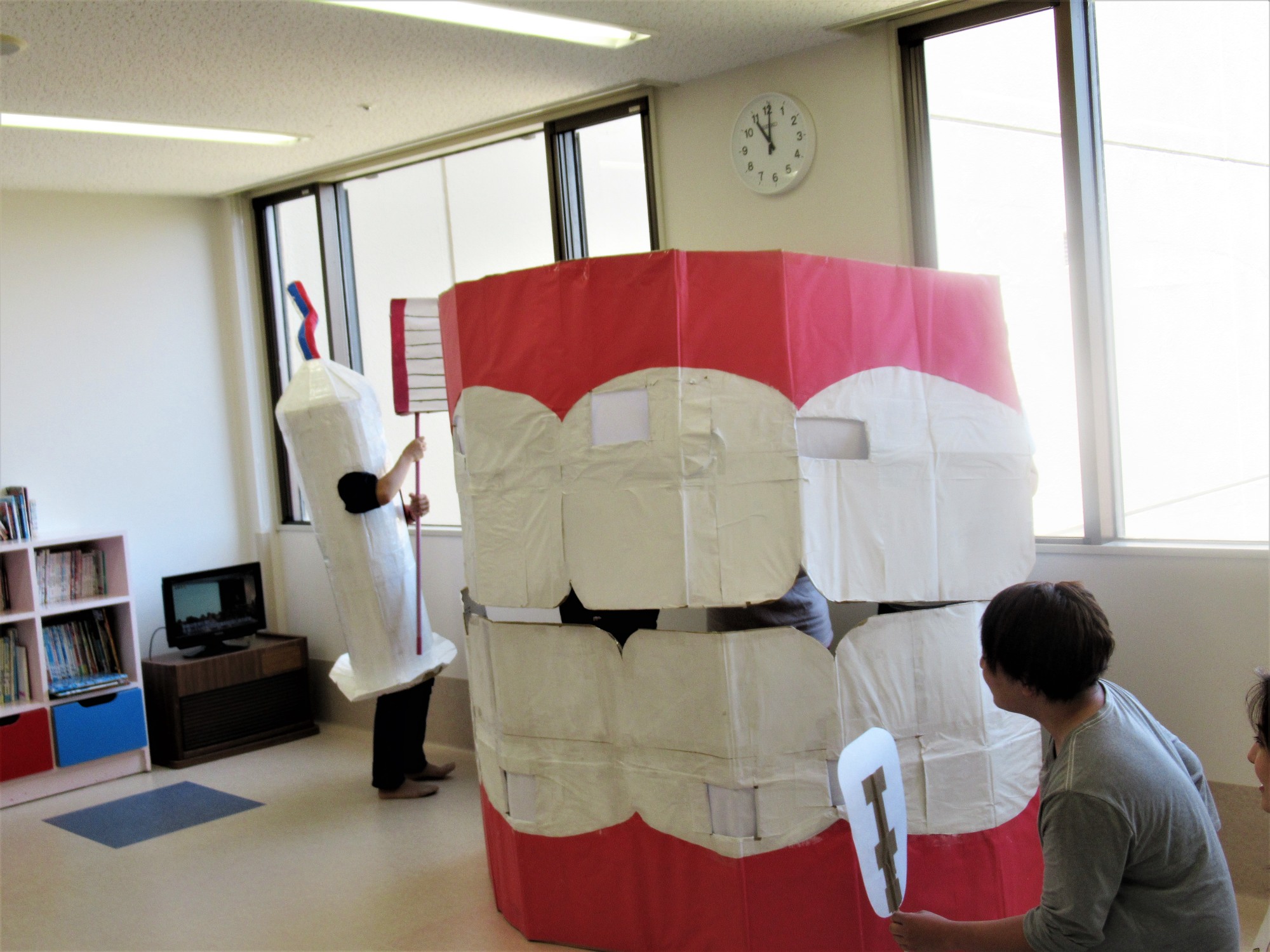 名ばかりの顧問をしている部活動「ぬいぐるみ病院」が、12Fの小児病棟のプレイルームで「はみがき劇」