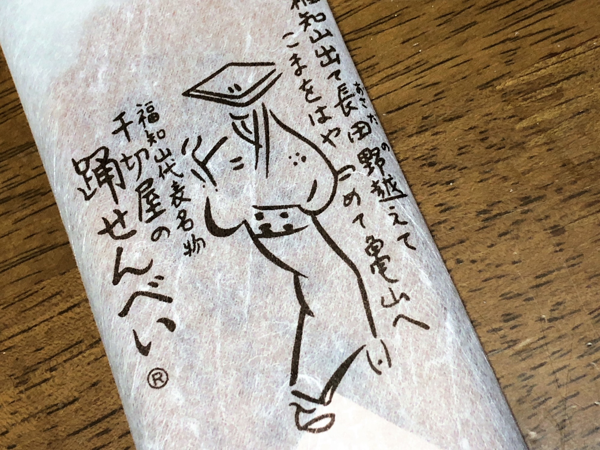 里柿・踊りせんべい(箱の表には、福知山音頭の歌詞で、「明智光秀 丹波をひろめ ひろめ丹波の 福知山」(←再来年の大河ドラマは「麒麟がいく」~明智光秀です)
