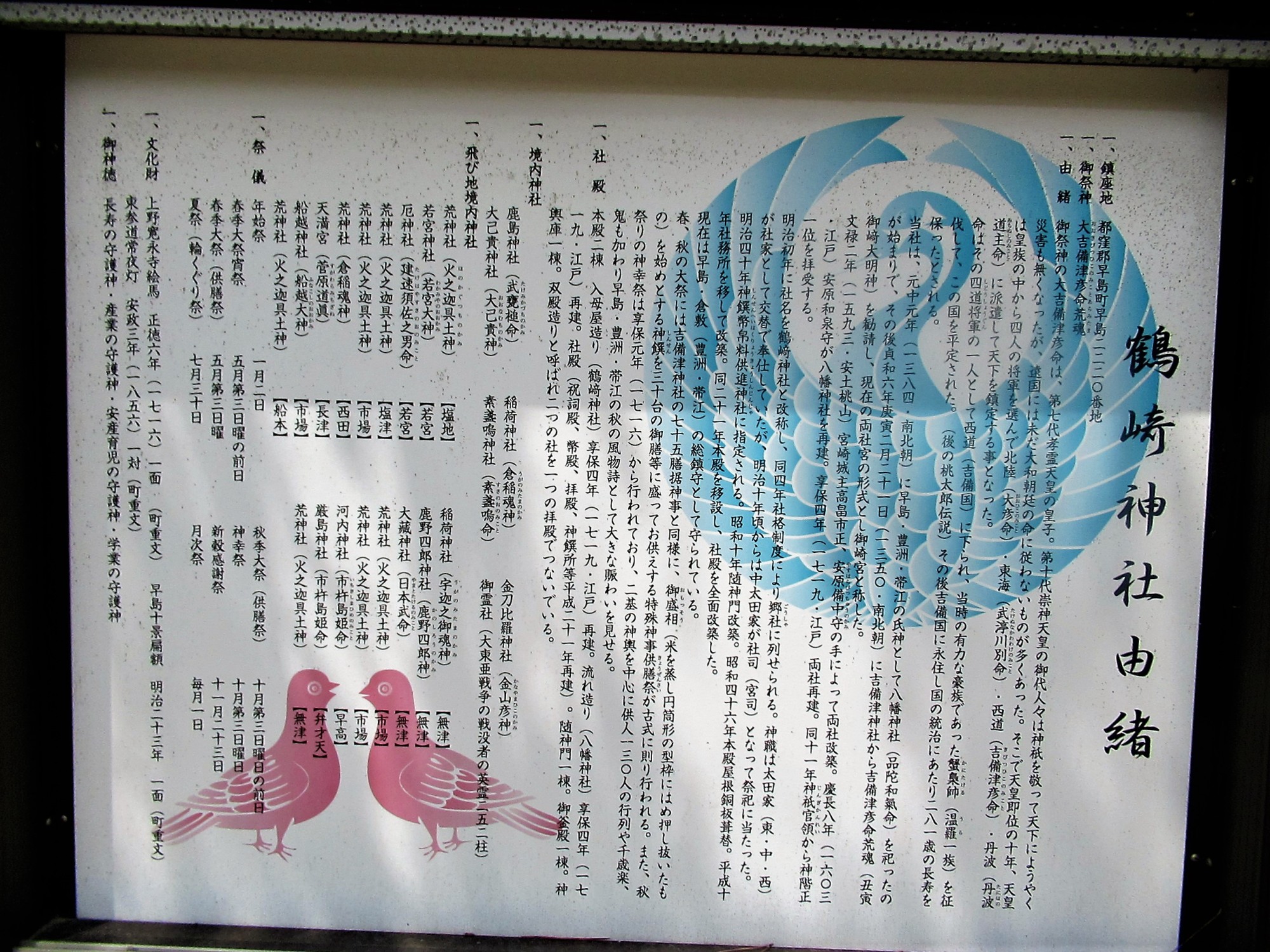 【当社は、正中年間(1324~1326・鎌倉)に早島の氏神として八幡神社を祀ったのが始まりで、その後貞和6年庚寅2月21日(1350・北朝)に吉備津神社から吉備津彦命荒魂を勧請し、現在の両社宮の形式となり御崎宮と称した。】