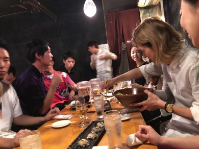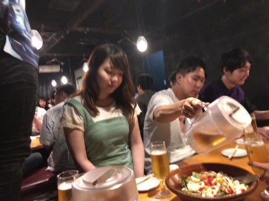 顧問をしているストリート・ダンス部の新歓コンパ! 10人の新入生、総勢>50人 ~ すごい、煩い、でも、和気藹々!!! 明日は出張、前の所用もあって車。残念!