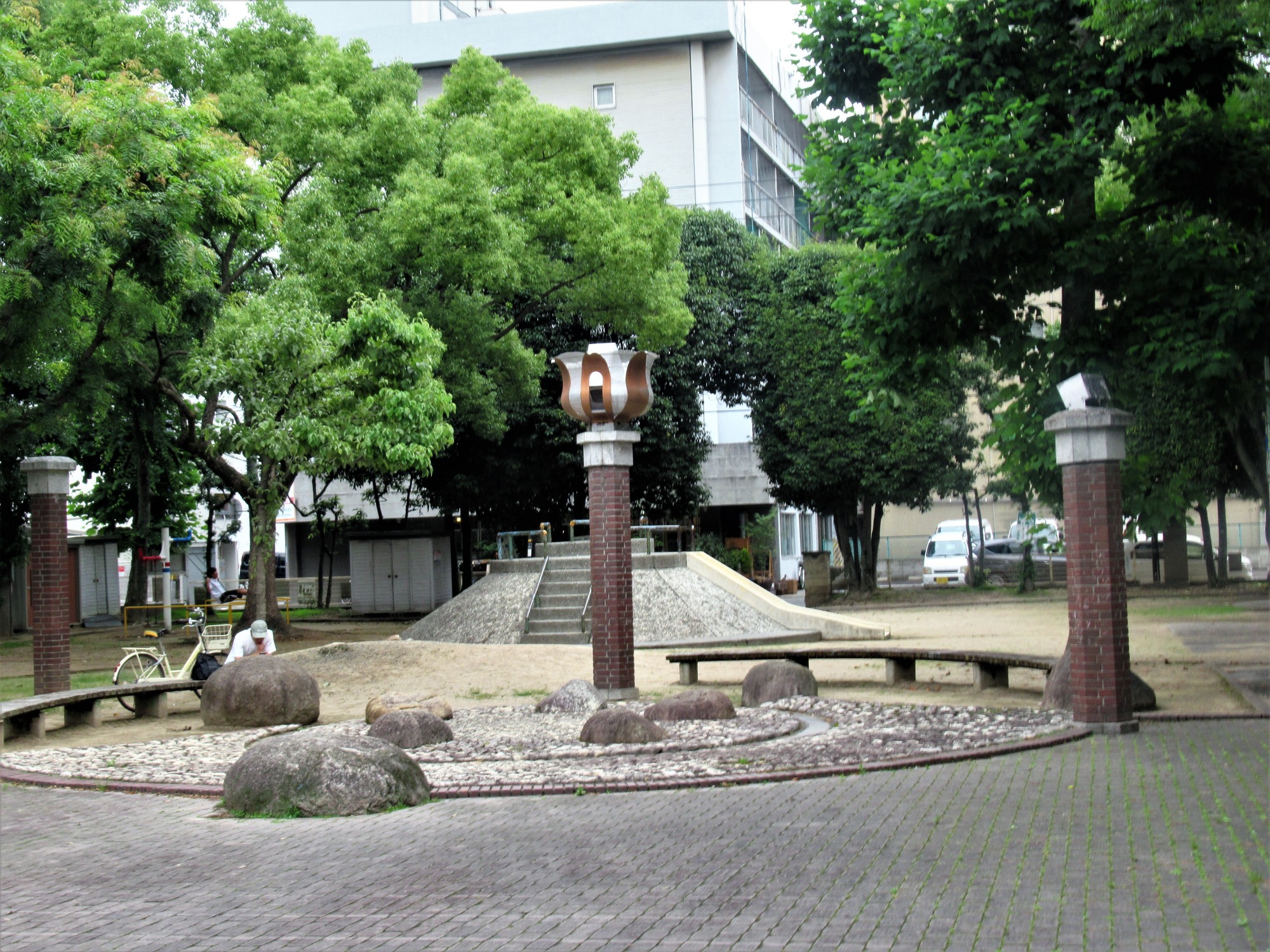 さて、午後の岡山大学津島北キャンパスから、夜は、ダナス部のコンパ~空き時間は、西川緑道公園の桃太郎大通りの北側です。