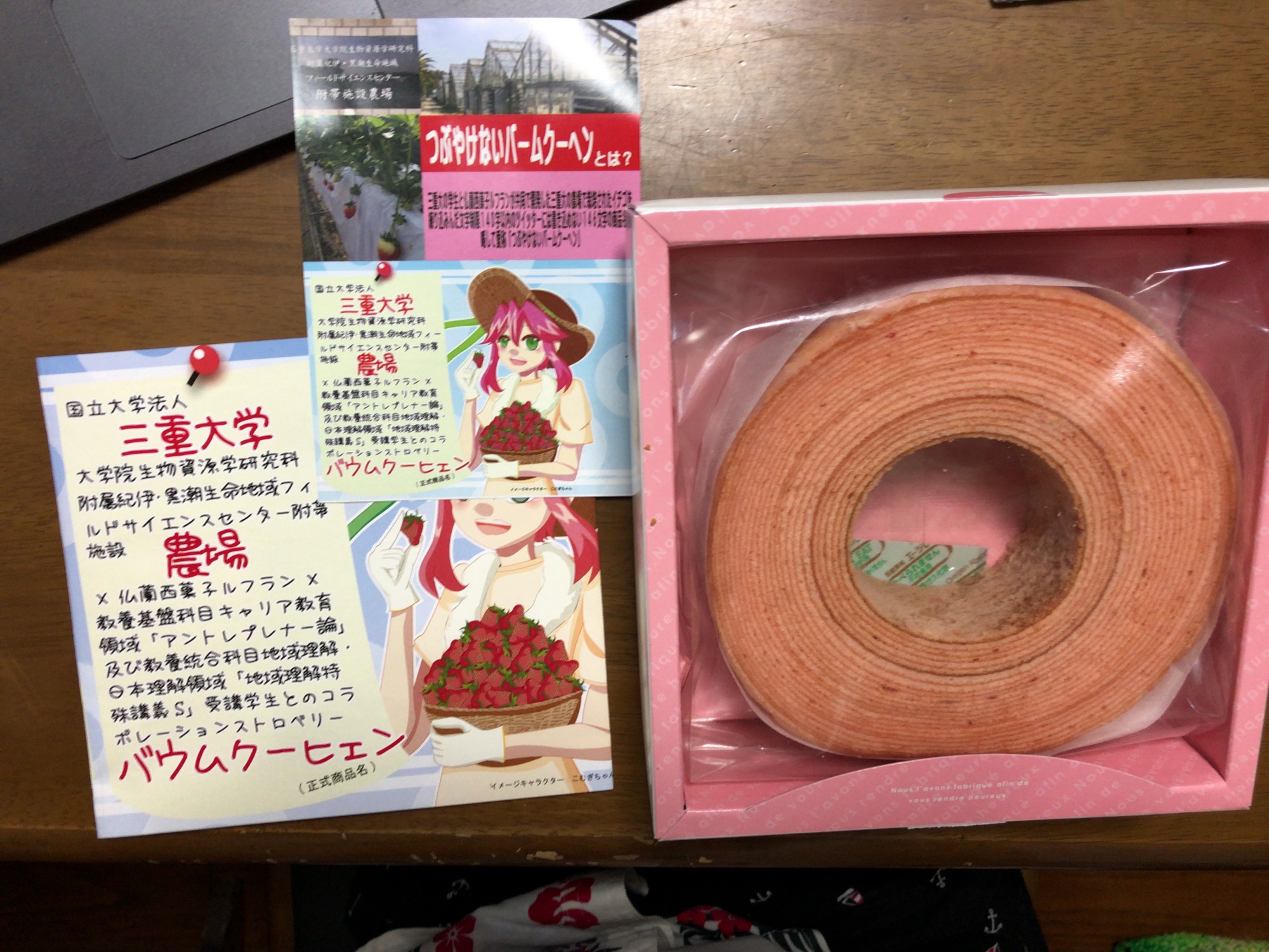 お土産で、三重大学の産学連携活動の様です。バームクーヒェン