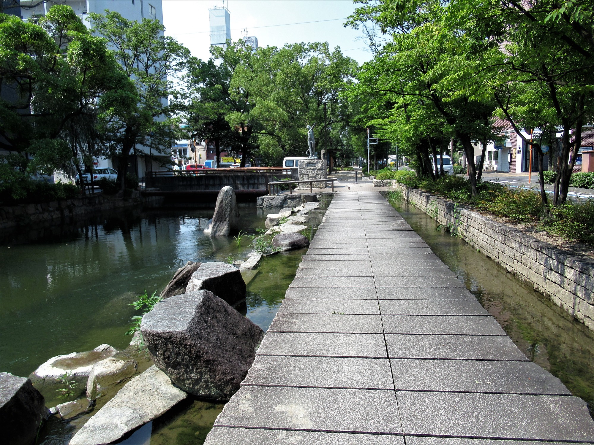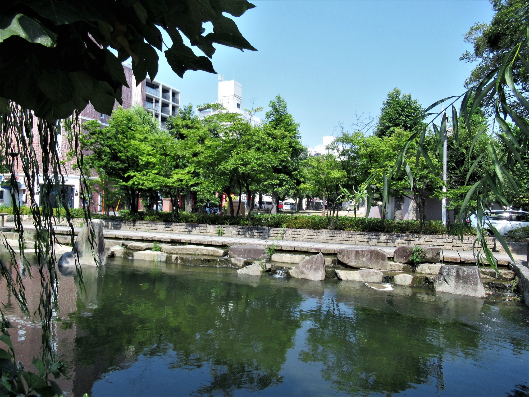 ちょっと早めの到着で、涼を求めてではないですが、水辺へ~西川緑道公園