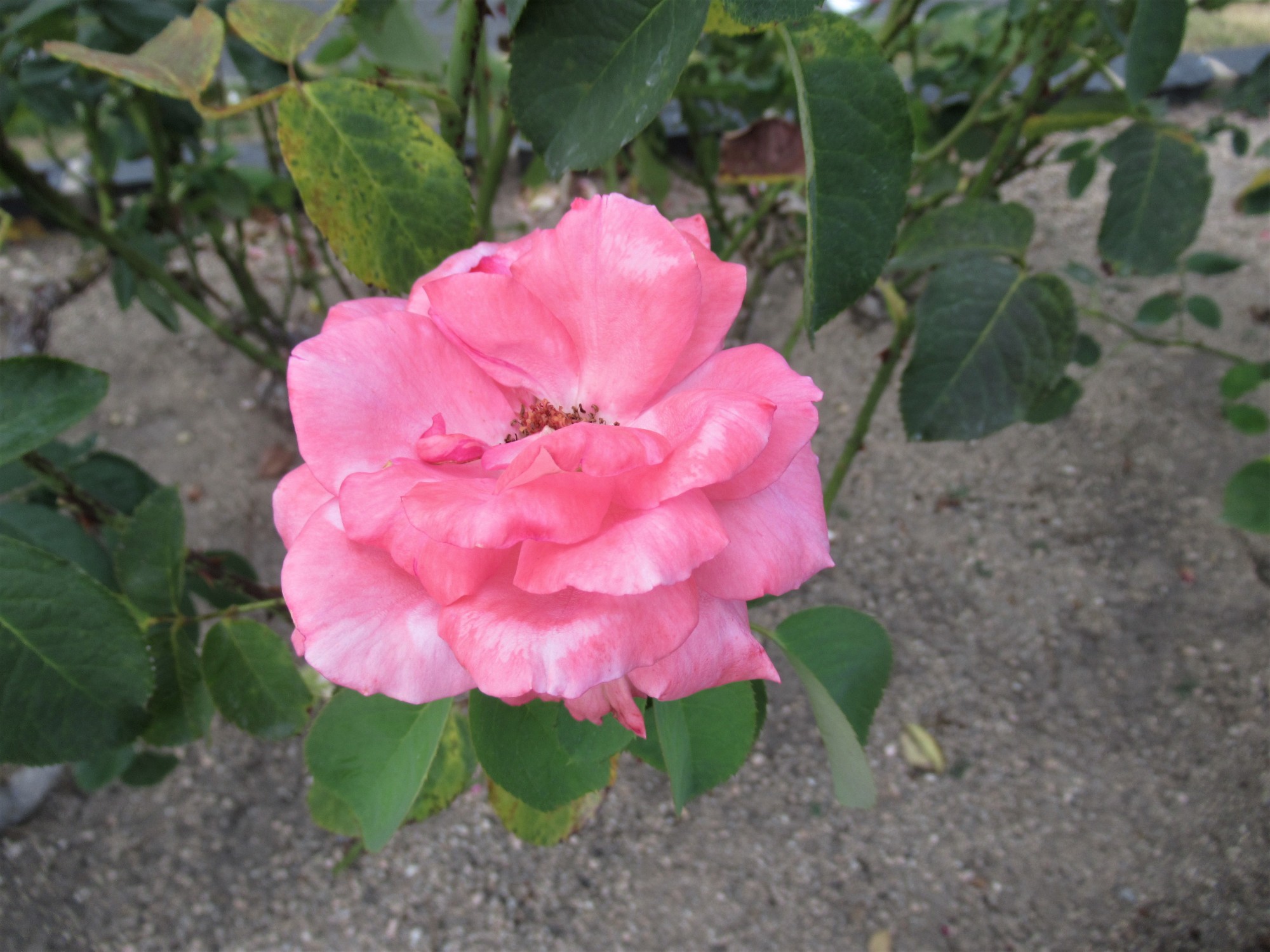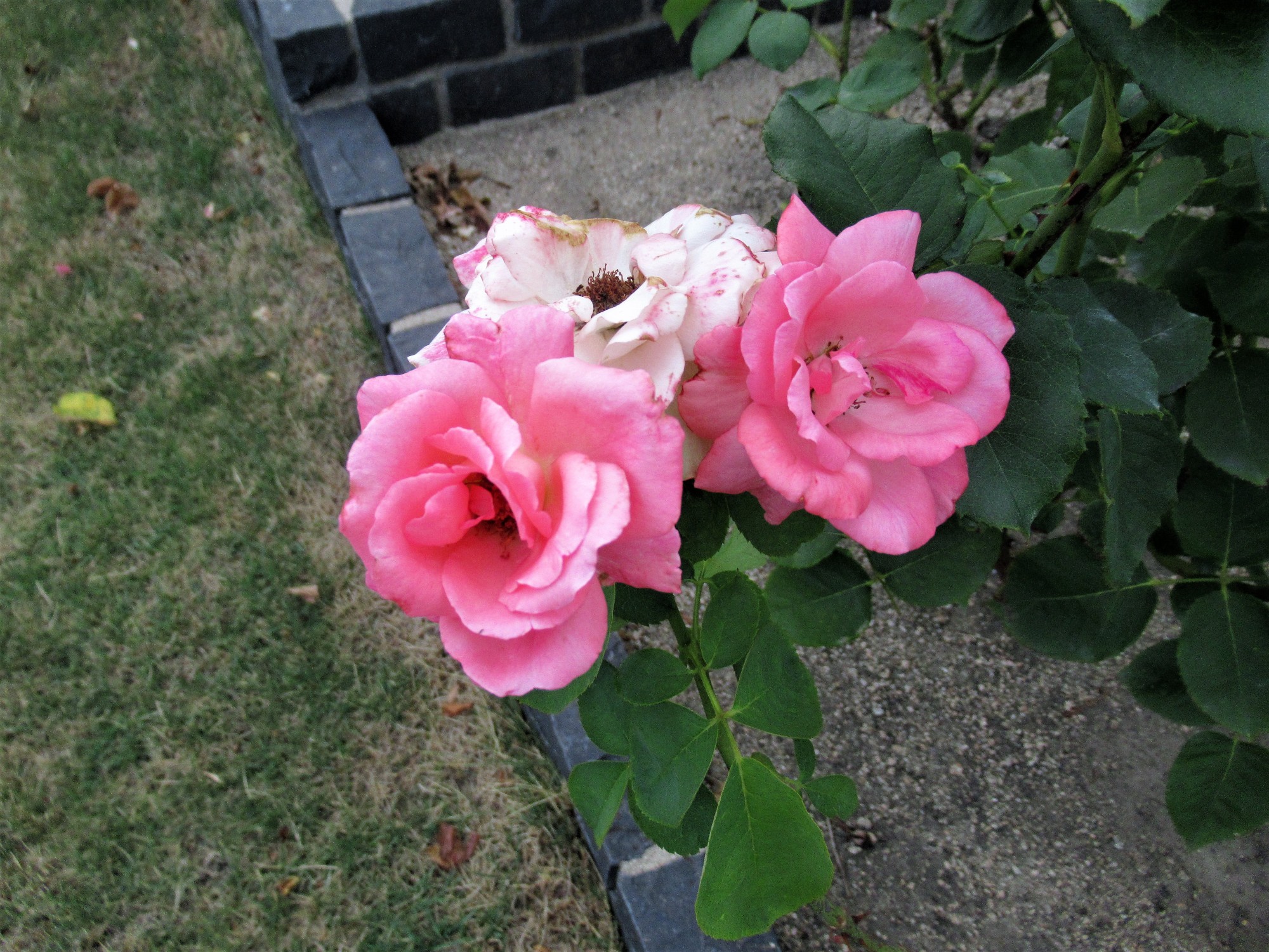 いつものバラの花壇の花々も・・・長く続く猛暑に疲れた容子です。