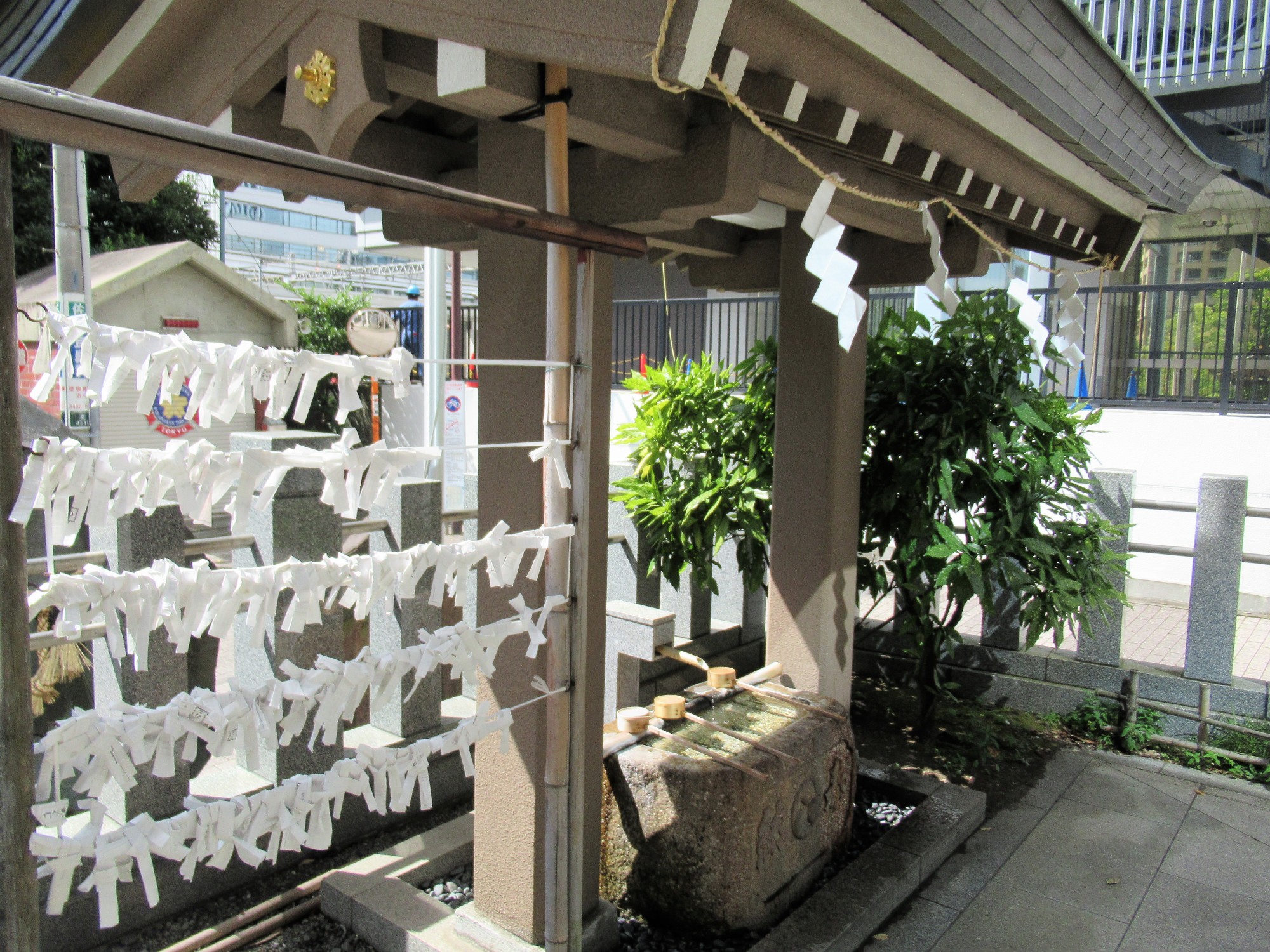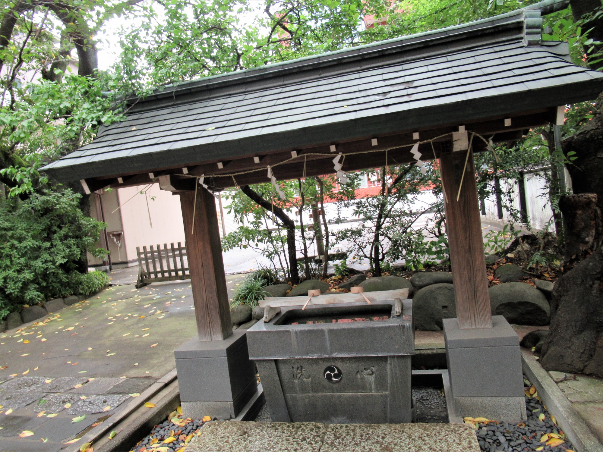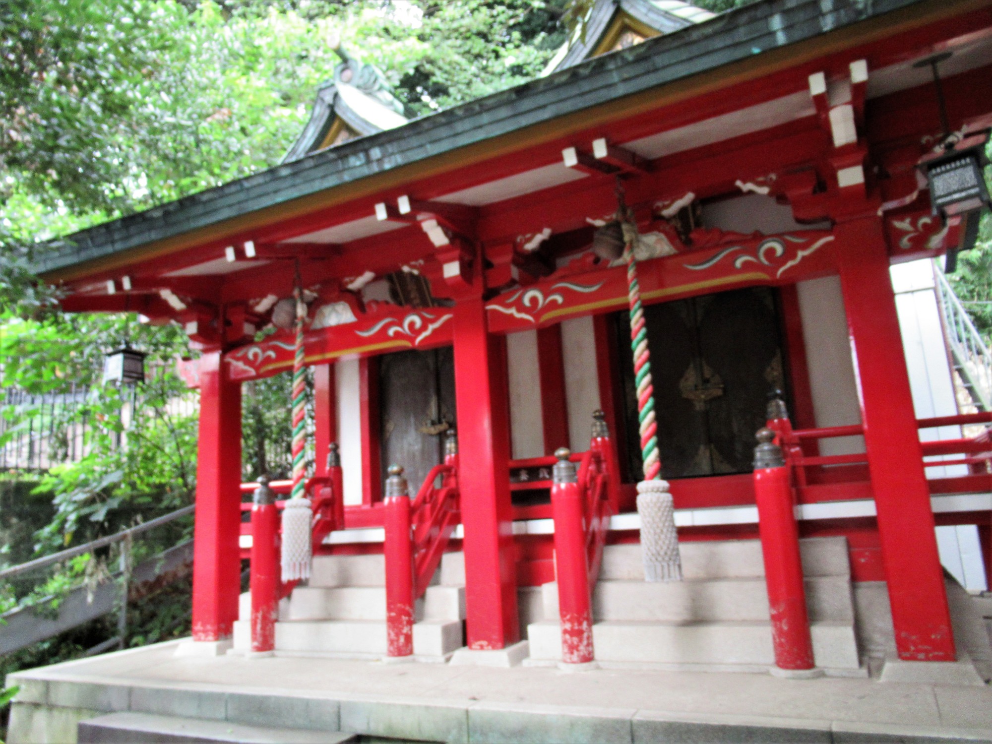 【御田八幡神社は、日本の東京都港区三田にある神社である。 誉田別尊命を主祭神とし、天児屋根命、武内宿禰命 を配祀とする。 海側斜面に位置する。江戸時代には直ぐ正面に東海道が走り、その向こうは江戸湾の海浜が開け、さぞかし風光明媚であったと考えられる。】