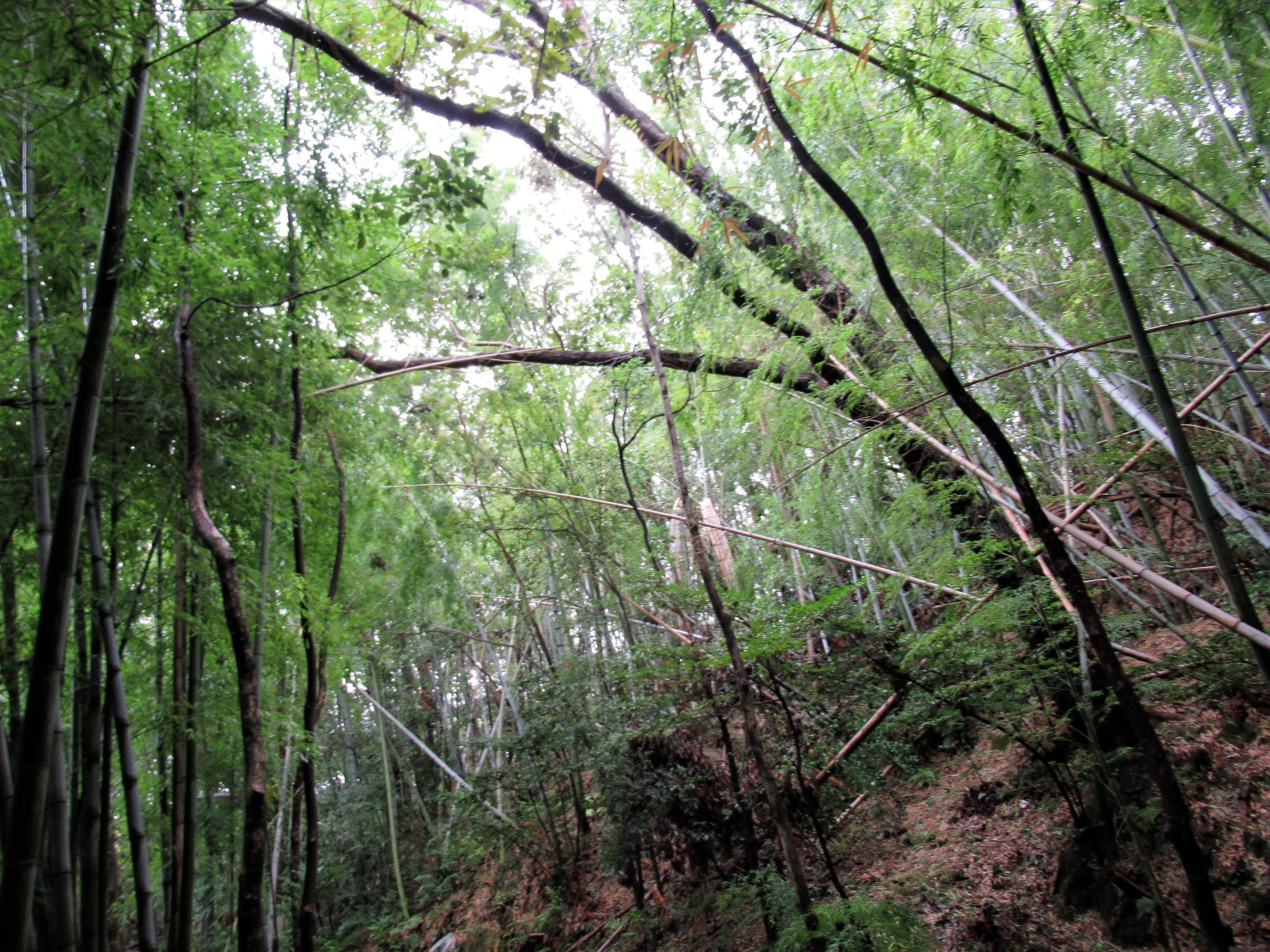 竹林~これも台風の影響か、ボキって折れているのも・・。