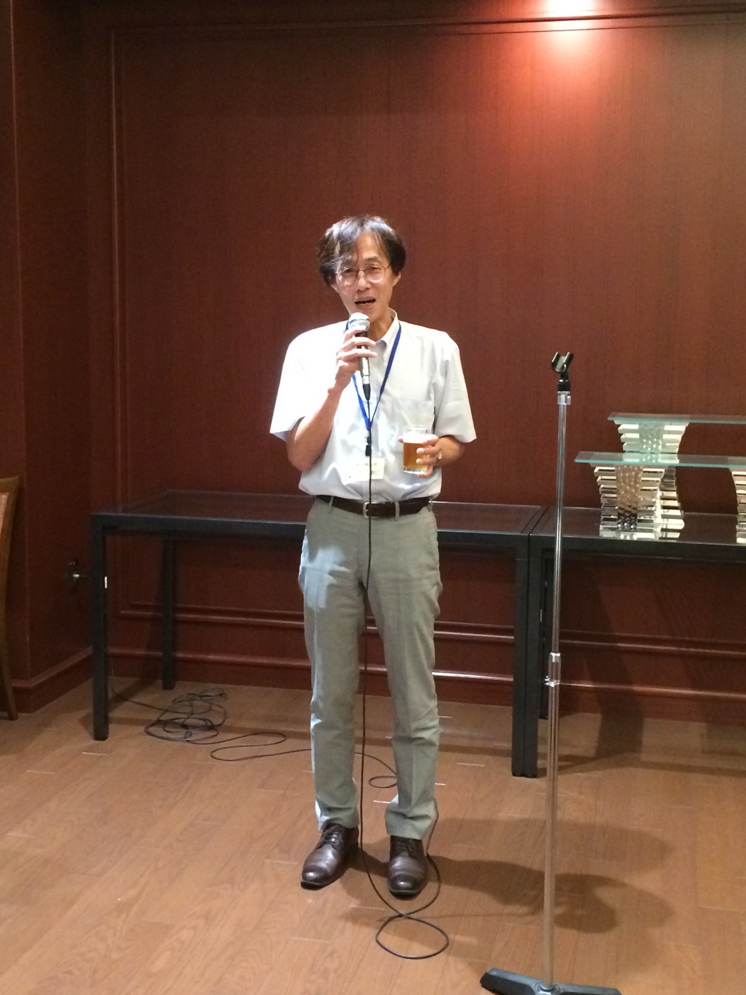 代表の木下先生からいきなりご指名を受けて、懇親会で乾杯の音頭を、との由(学会と異なって、新しい人に挨拶兼ねて、してもらっているそうですが)・・・医学医療系以外もいらっしゃるので、神奈川ではなく倉敷の「川﨑」医科大学・・ですと。