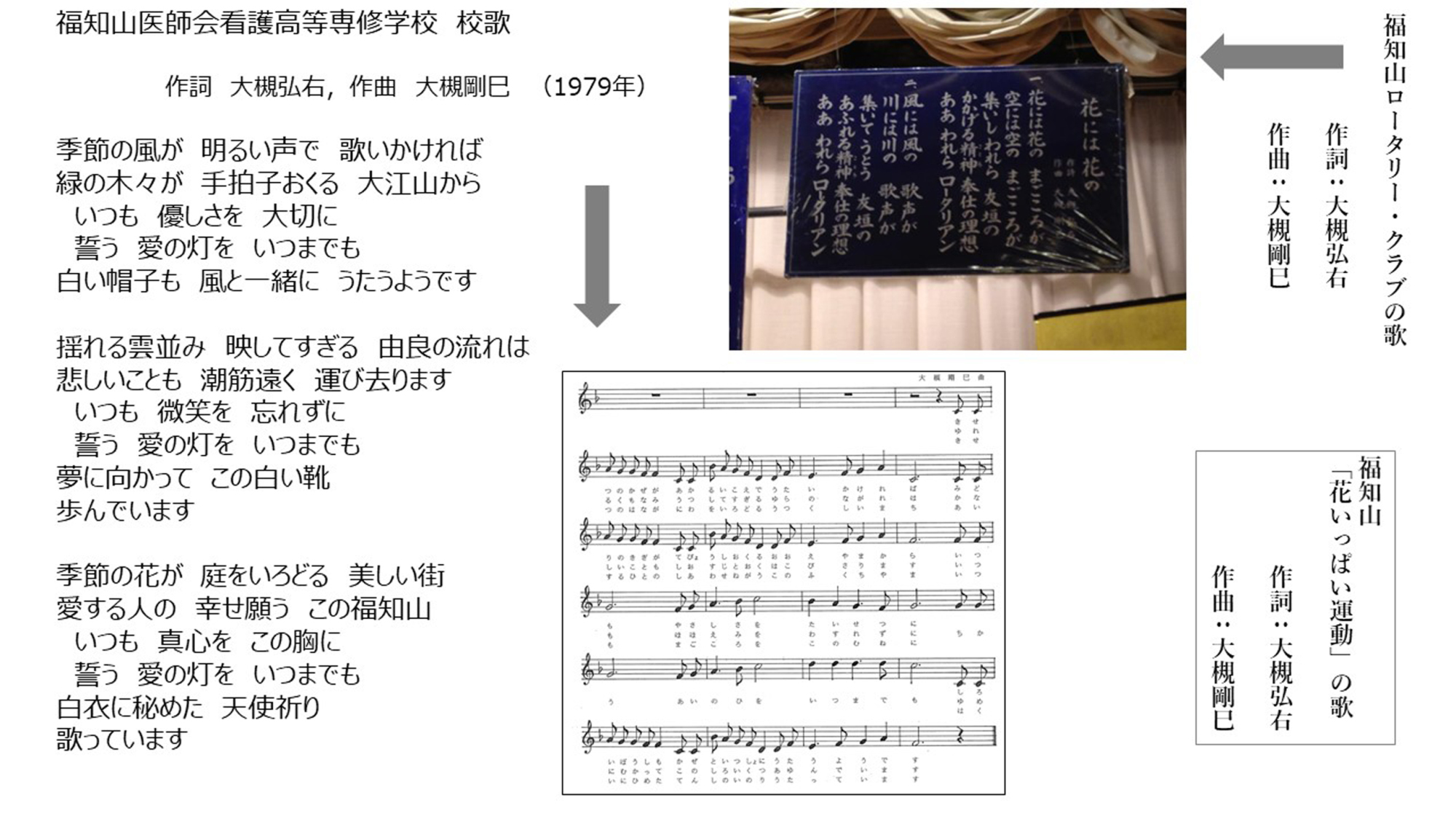そして、父の作詞で、大槻の作曲のもののうち、福知山看護学校の校歌の映像を紹介。