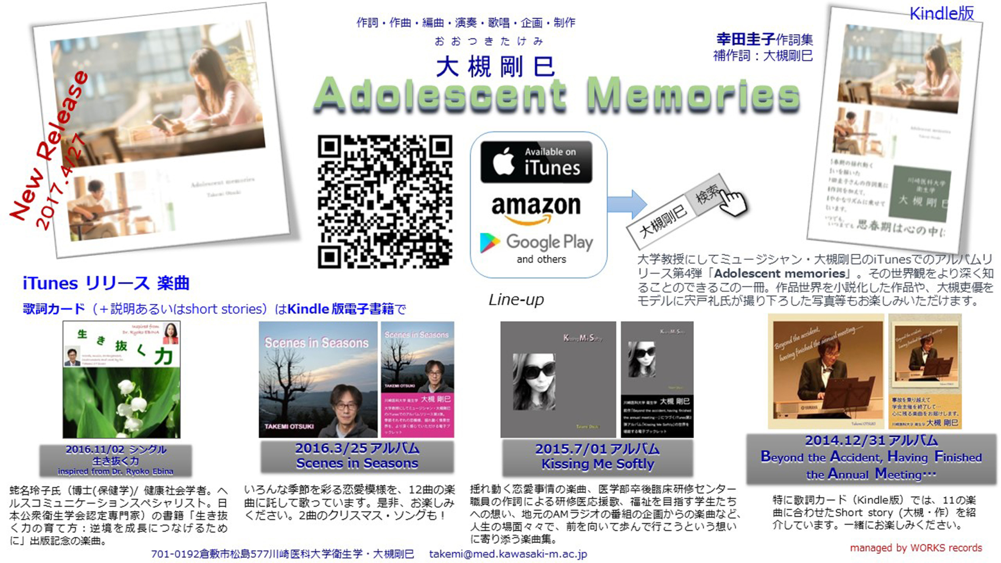 Medical School Hourってのが、あります。大学の教員が、附属高校の生徒さんに、授業をするって枠です。2007、2009~2011年度に、その頃は、附属高校まで出向いて50分授業で、話したり、最後の方は、ずっと歌っていましたが、今年、久しぶりにご指名を受けました。なんと、附属高校の1年生が、こちらまで来てくれるっていうシステムに変わったのですね!!