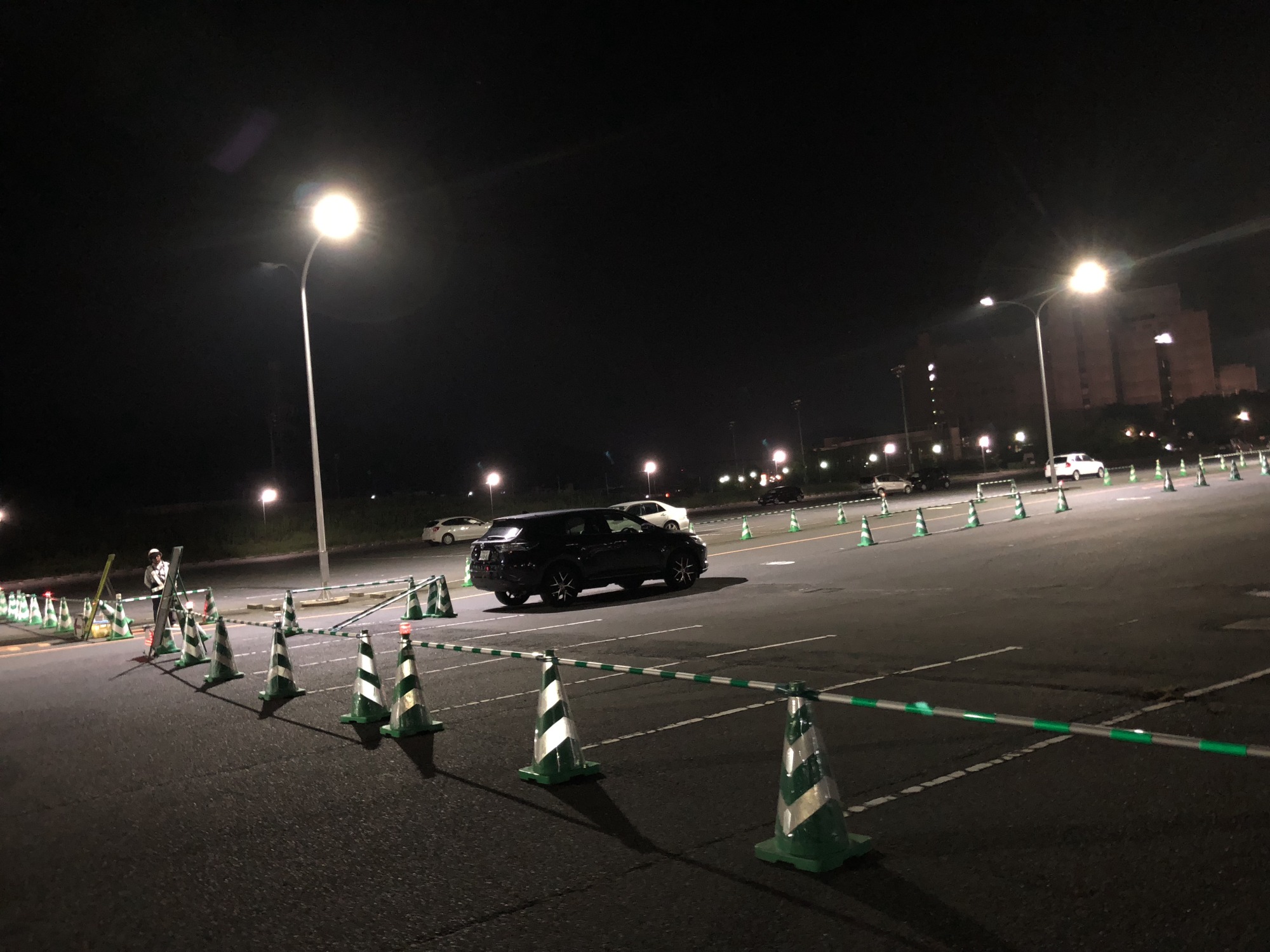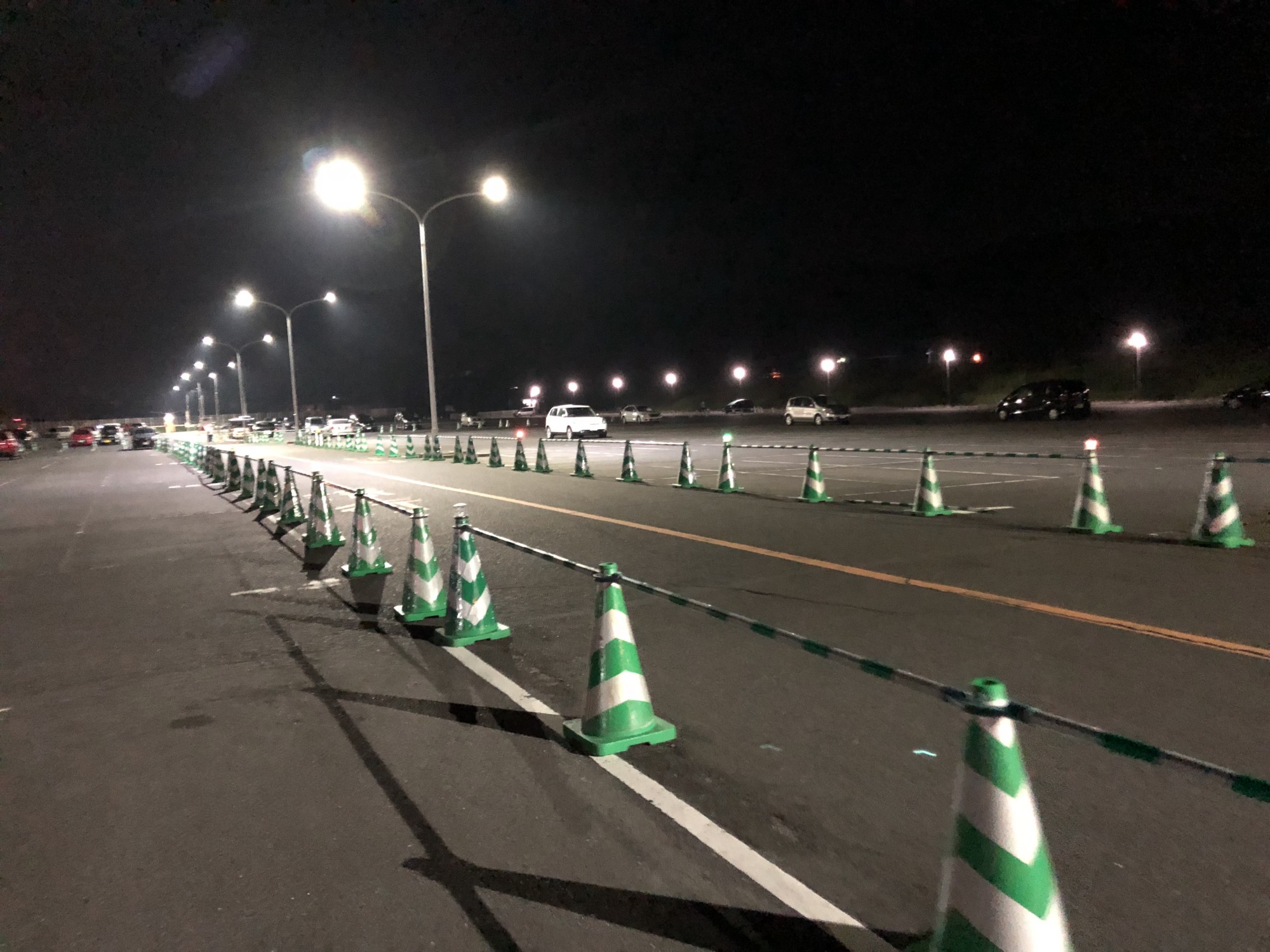 連休が、2週連続になります。大学の駐車場は、線の引き直し作業!
