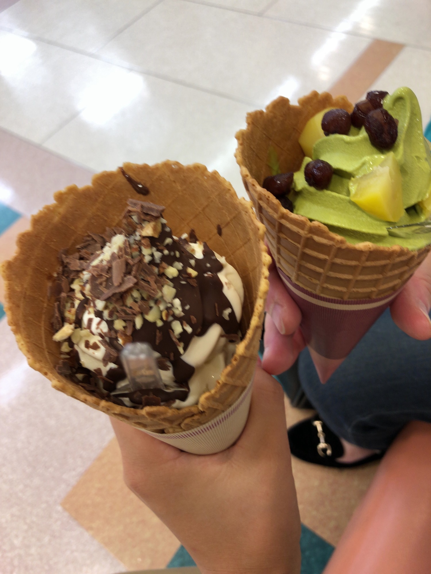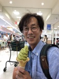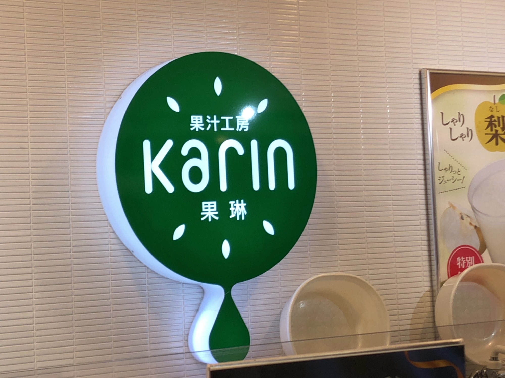 水辺公園から戻って・・・イトーヨーカドーのフードコートで、しゃりしゃり梨ジュース