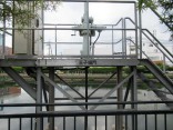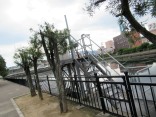 樋門がありますね、王子町とのことで、王子樋門。【堤内地の雨水や水田の水などが川や水路を流れ、より大きな川に合流する場合、合流する川の水位が洪水などで高くなった時に、その水が堤内地側に逆流しないように設ける施設です。このような施設のなかで、堤防の中にコンクリートの水路を通し、そこにゲート設置する場合、樋門または樋管と呼びます。樋門と樋管の明確な区別はなく、機能は同じですが、一般に、堤防の下をくぐる部分の構造が丸い管の場合で規模の比較的小さなものを樋管、箱形等の構造の場合で規模の大きなものを樋門と呼びます】だそうです。