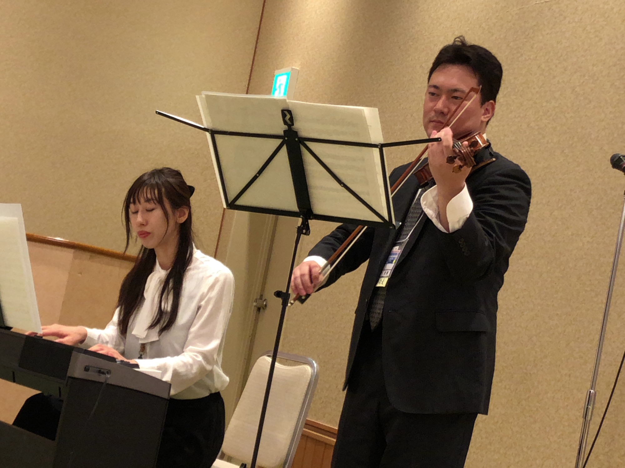 懇親会では、鈴木先生と、環境研の志賀さんによるヴァイオリンとピアノでの、「千本桜」