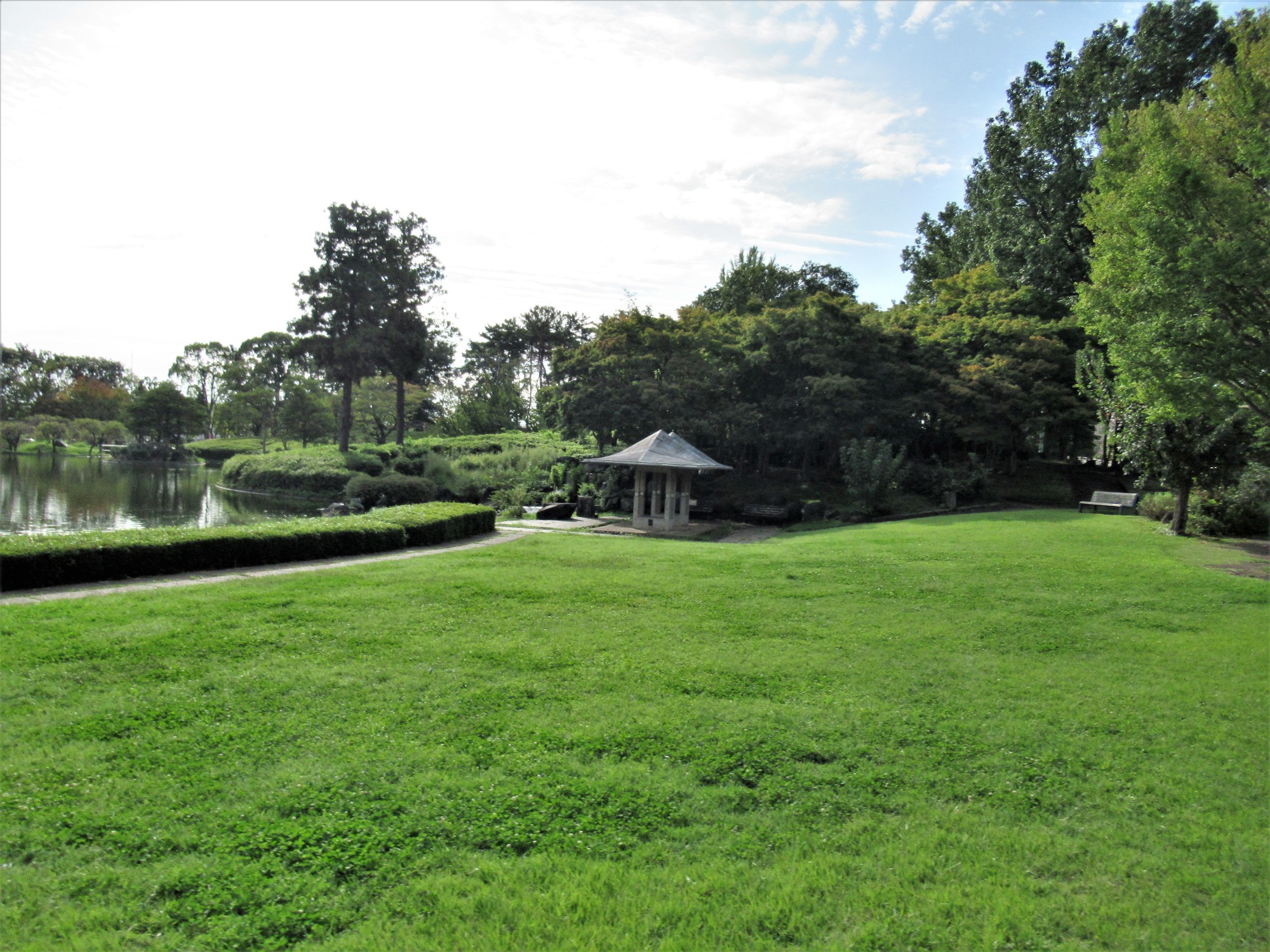 他の公園は、高い木々と芝生か池かって感じですが~ここは、少し日本庭園風にもなっていたり。