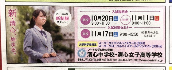 そして、今日の山陽新聞・・・私立の中高の宣伝頁~あれれ!