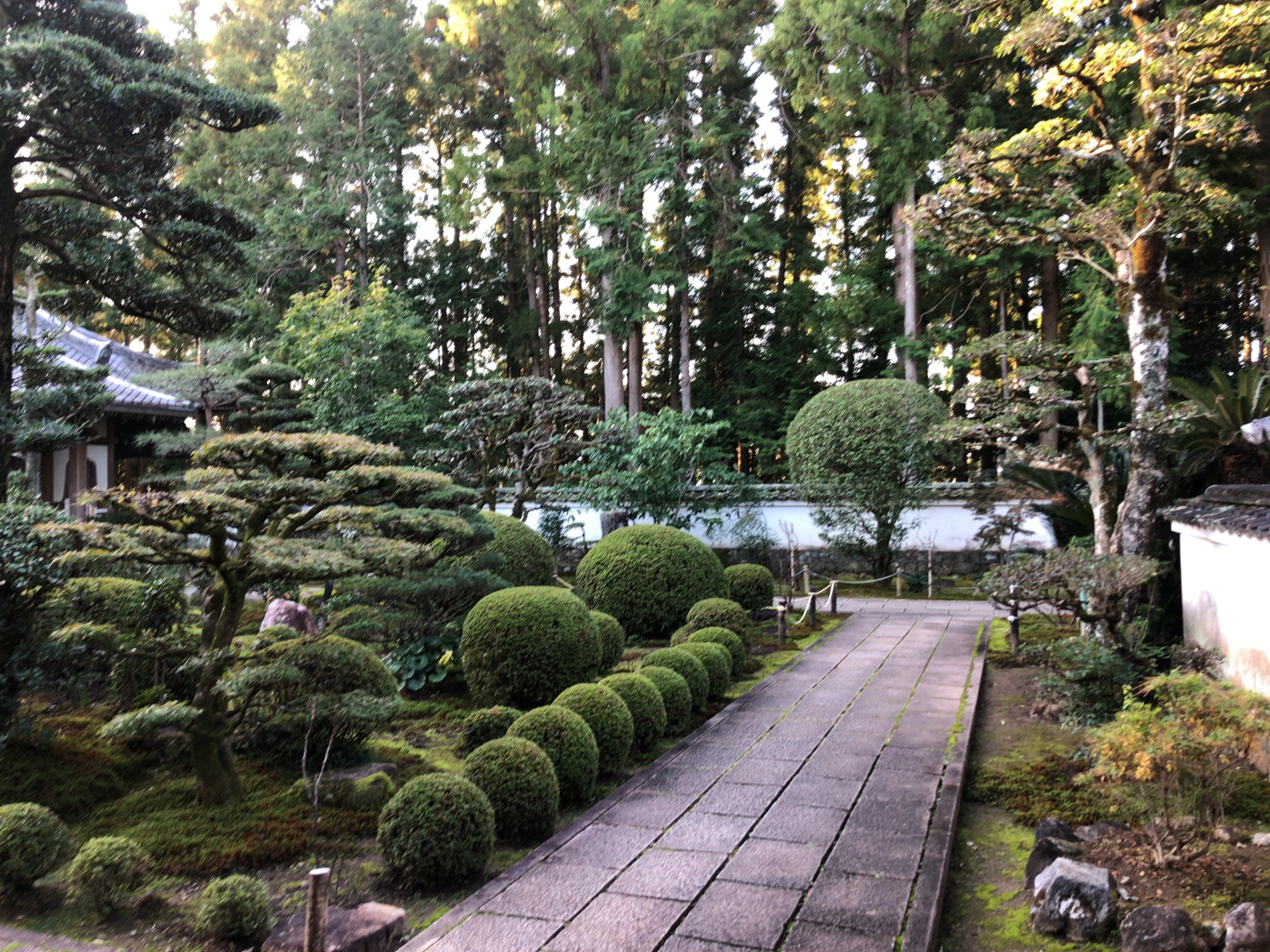 【庭園、句碑:本堂を背にして、春は桜、初夏には紫陽花、秋には萩と、心やすまる参道、創建当時の七重塔の心柱をささえた礎石、杉苔の美しい庭園が広がる。また、高浜虚子の五女・高木晴子さん、長男・年尾さん、孫・稲畑汀子さんの句碑などがある。】