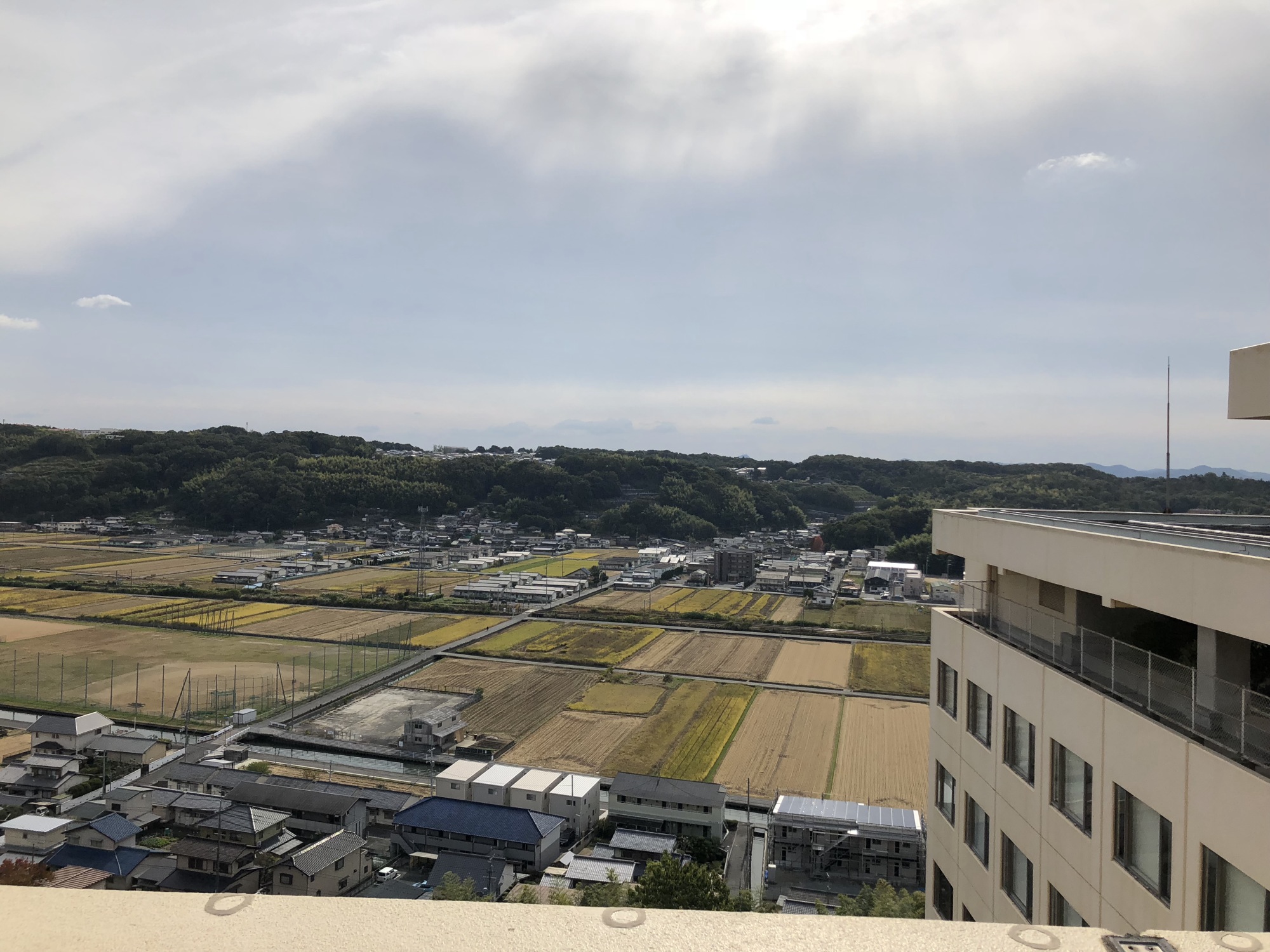薔薇も 咲いていますし 遠く 岡山市街地 福祉大や 短大