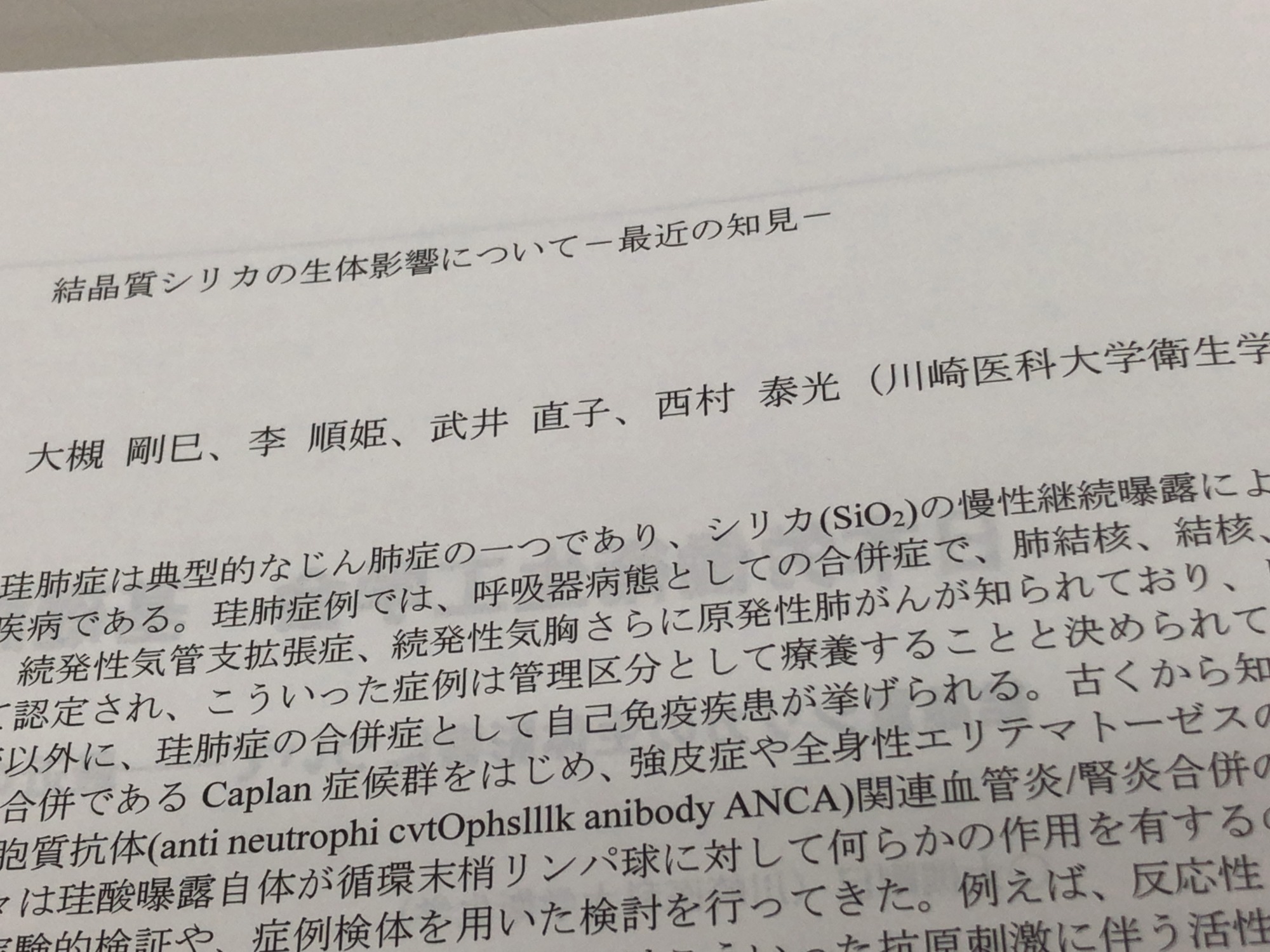 富山国際会議場(大手町ホール)で、第58回日本労働衛生工学会の基礎講座でシリカの話をします。