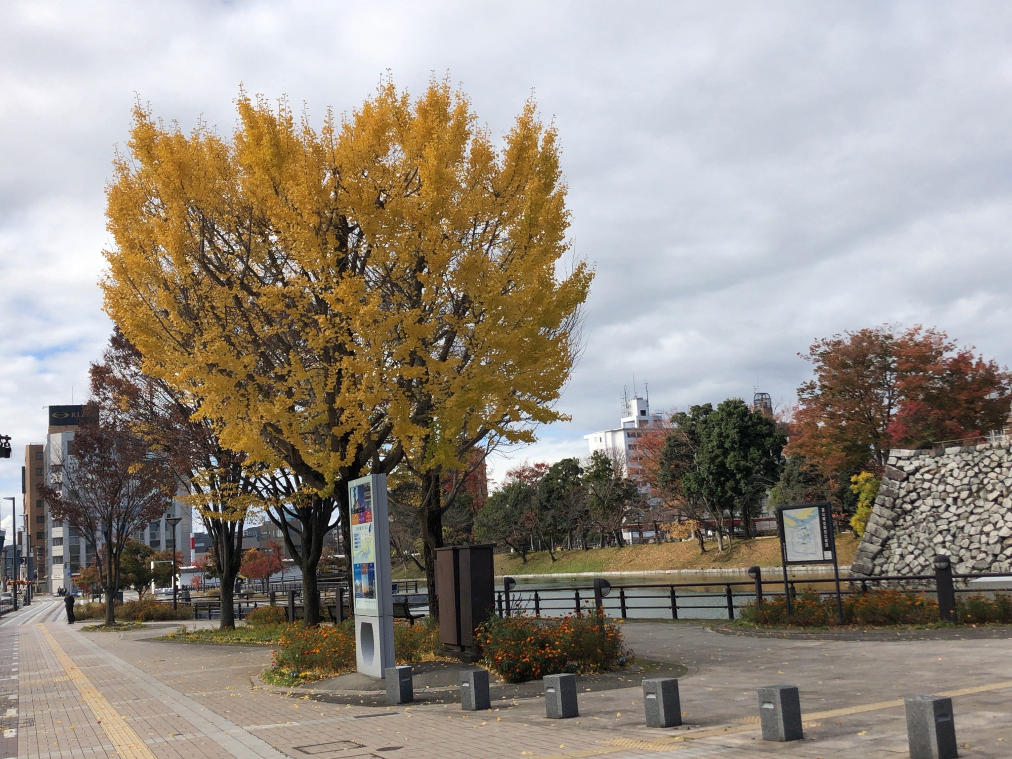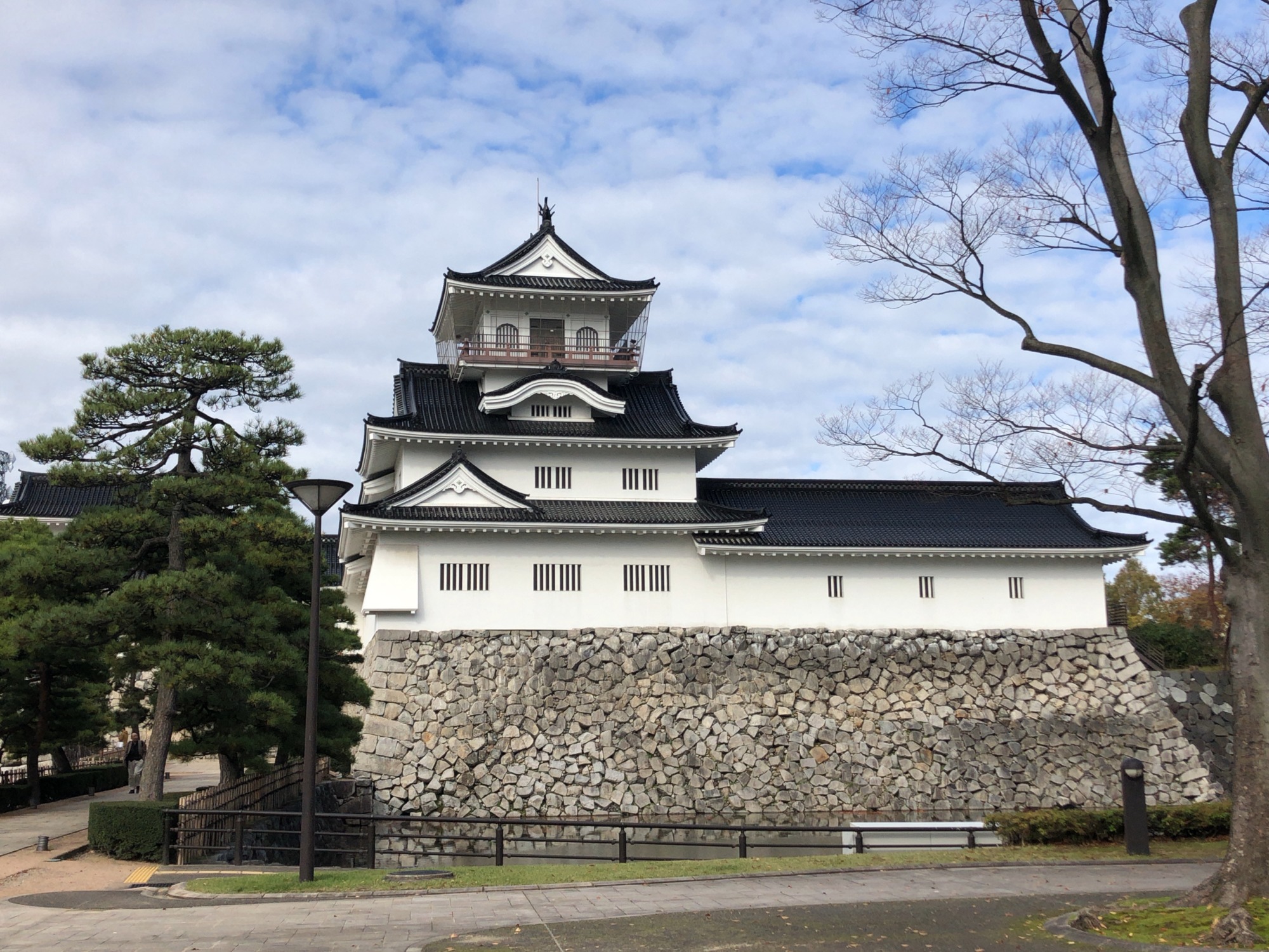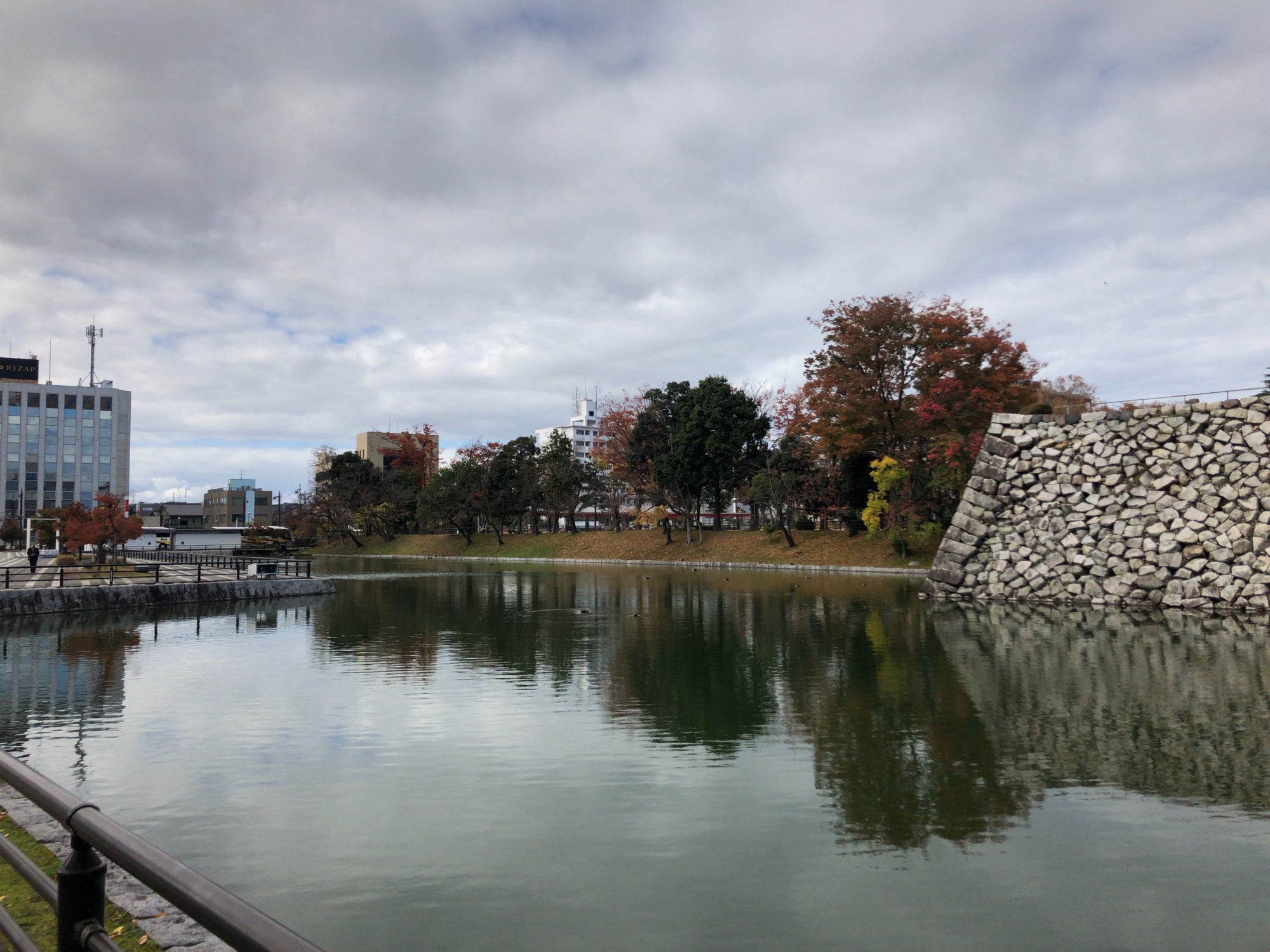 講演を終えて、午後は富山大学医学部に稲寺教授を訪問します。路線バスしか手段がなく、この時間帯は30分に一本・・その間に、向かいの富山城址