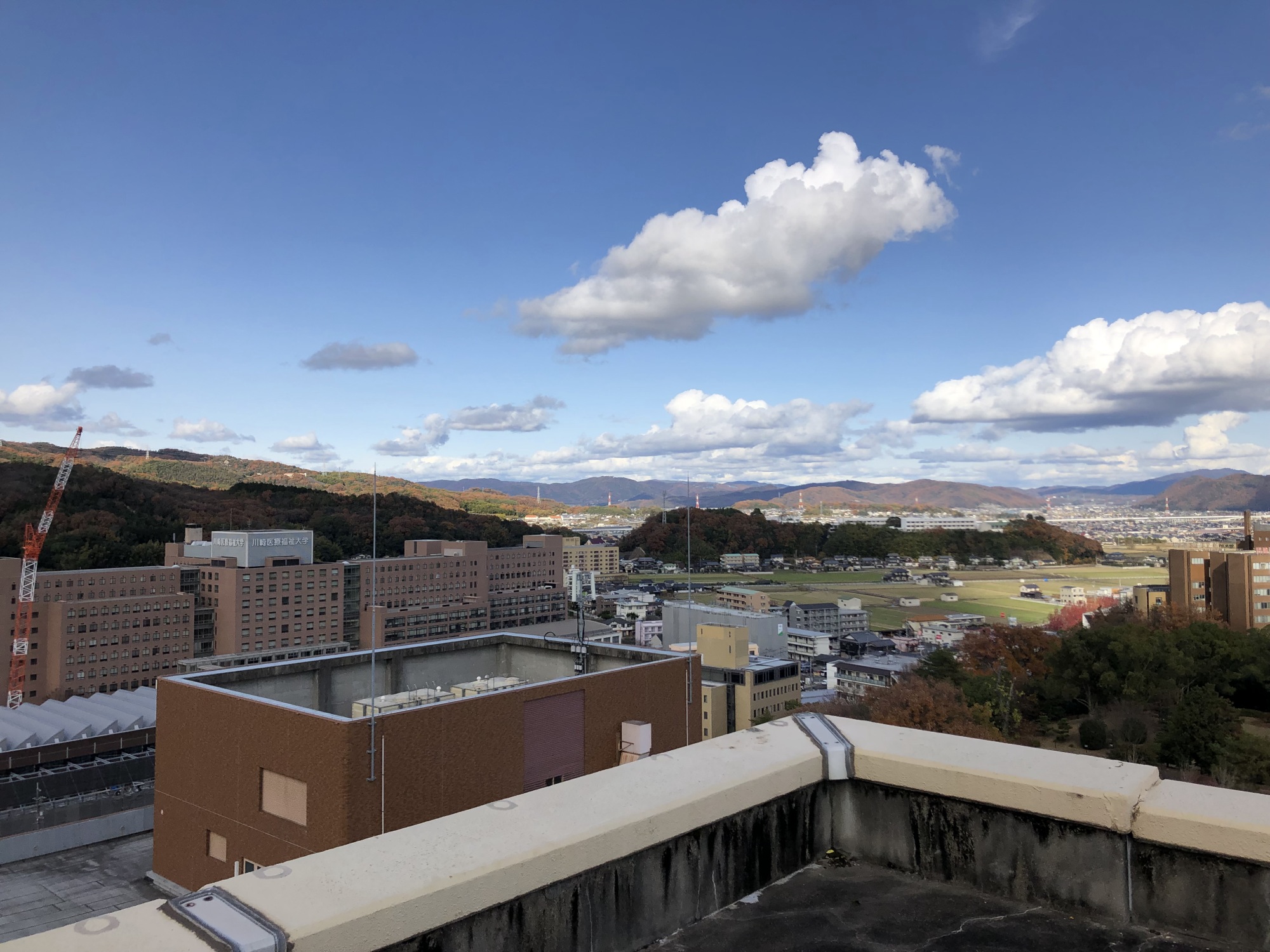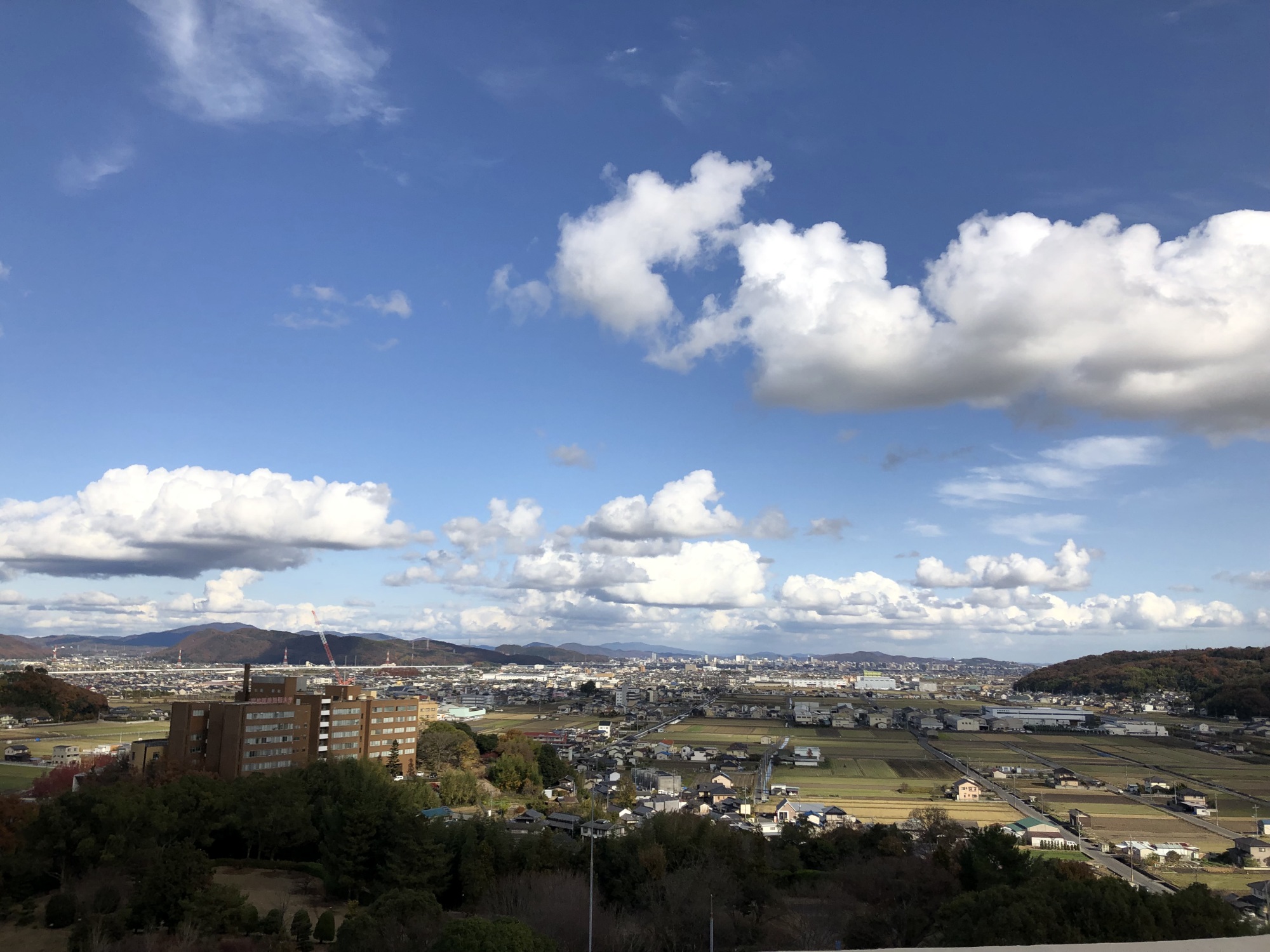 冬の青空を越えて、岡山市街地もよく見えます。
