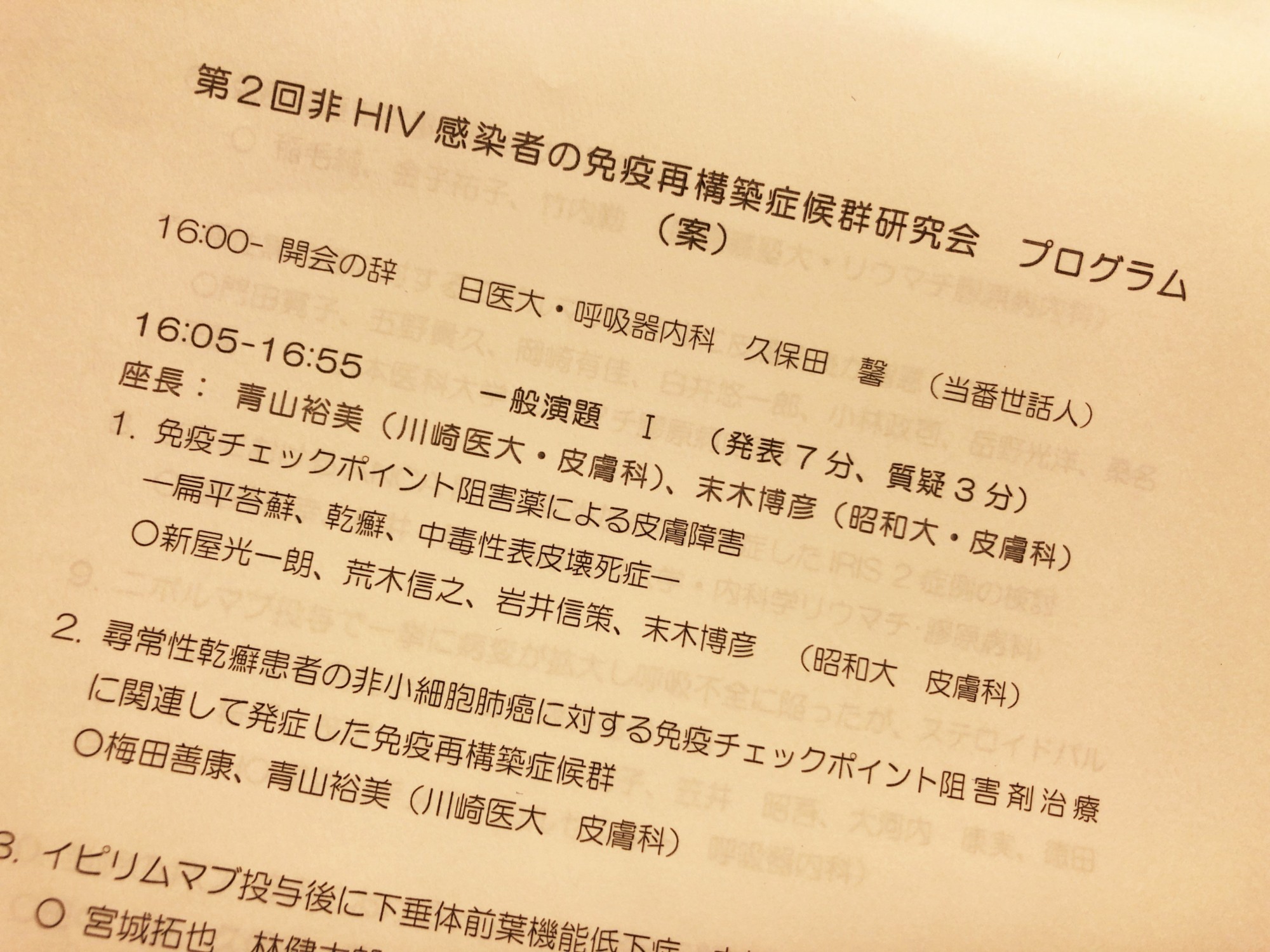 nonHIV-IRISの研究会は、種々の症例報告・・・で、今回は、コアメンバーの会には、李先生に代理で出席してもらいました。終了後は懇親会で、李先生と二人で参加。