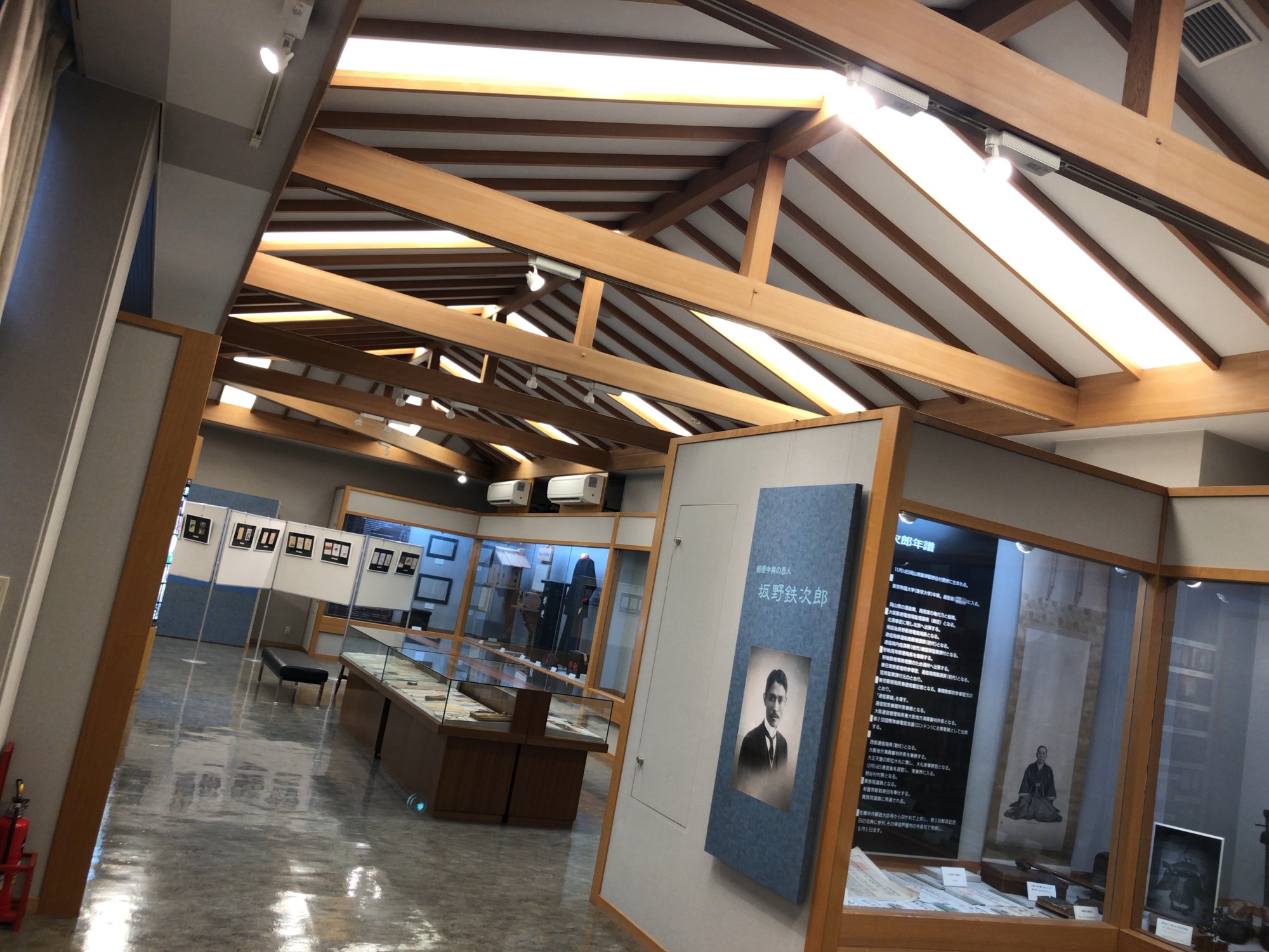 いろんな展示があります!【郵便事業の運営に科学的調査分析方法を導入して通信地図を創案したり、郵便物区分規程を制定したりするなど「郵便中興の恩人」と呼ばれている坂野鉄次郎の功績を記念するため、1953年(昭和28年)7月に設立され、開館40周年を契機に現在地に移転・新築されました。館内には、坂野鉄次郎の業績はもちろん、郵政事業の歩みなどを模型で分かりやすく紹介する展示もあります。】