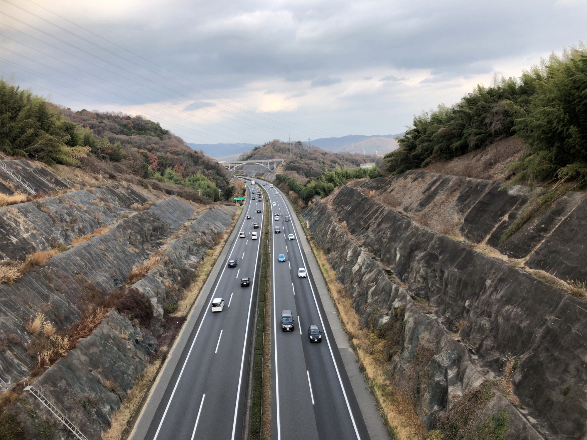 山陽自動車道を跨ぎます~それほど、車が多くは無いかな?