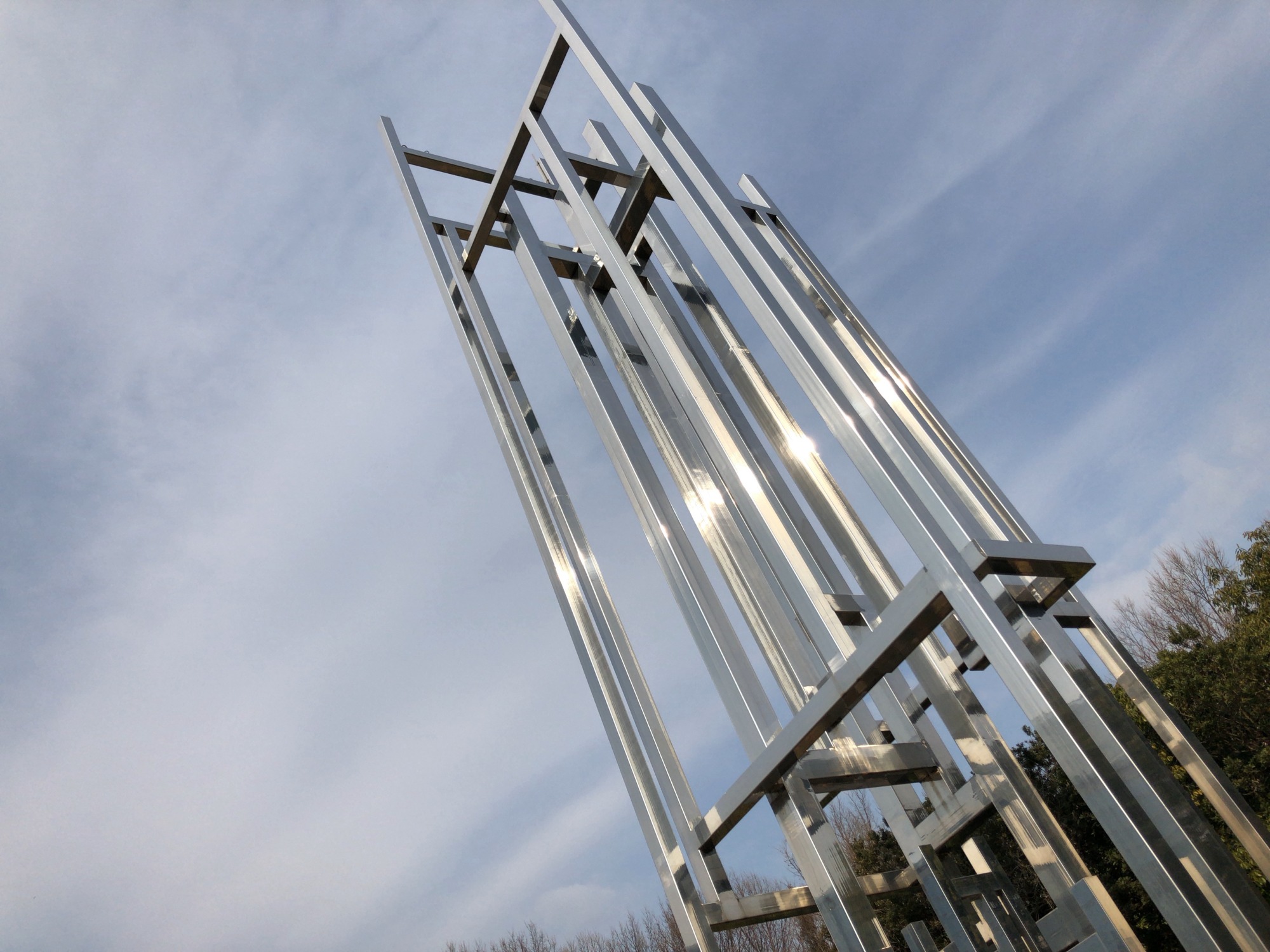 そして・・・ここって岡山県工業技術センターとかと同じ設計者かな? 青いガラス面や、このモニュメントも、似てる!