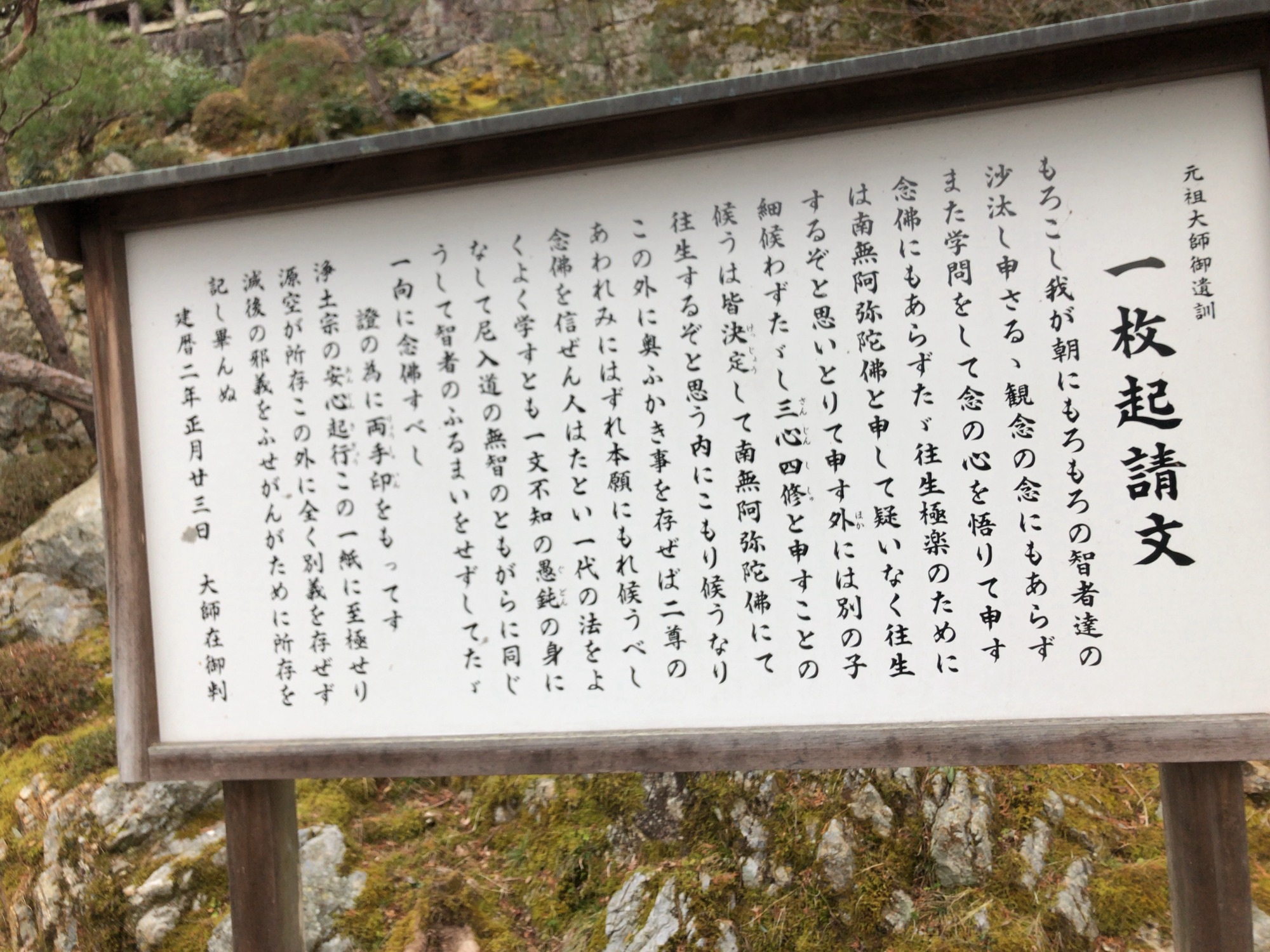 【知恩院は、浄土宗の宗祖・法然房源空(法然)が東山吉水(よしみず)、現在の知恩院勢至堂付近に営んだ草庵をその起源とする。法然は平安時代末期の長承2年(1133年)、美作国(岡山県)に生まれた。13歳で比叡山に上り、15歳で僧・源光のもとで得度(出家)する。18歳で比叡山でも奥深い山中にある西塔黒谷の叡空に師事し、源光と叡空の名前の1字ずつを取って法然房源空と改名した。法然は唐時代の高僧・善導の著作『観経疏』を読んで「専修念仏」の思想に開眼し、浄土宗の開宗を決意して比叡山を下りた。承安5年(1175年)、43歳の時であった。「専修念仏」とは、いかなる者も、一心に弥陀(阿弥陀如来)の名を唱え続ければ極楽往生できるとする思想である。この思想は旧仏教側から激しく糾弾され、攻撃の的となった。法然は建永2年(1207年)には讃岐国(香川県)に流罪となり、4年後の建暦元年(1211年)には許されて都に戻るが、翌年の1月、80歳で没した。】