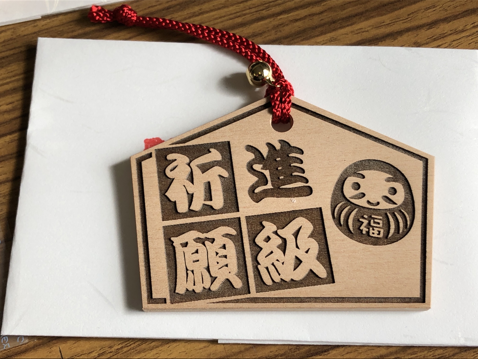 1~3年生は総合試験という進級試験まで残り1週間。小グループの担当の学生に、一人ずつ個人名の入った進級祈願絵馬を届けました。