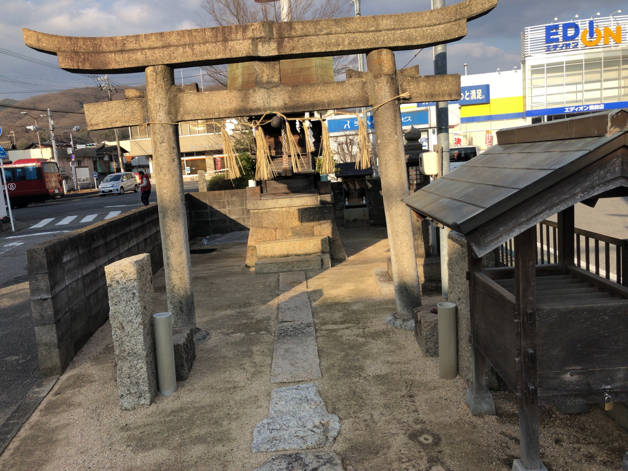 すぐ近くには、ショッピングモール的に、いくつかのお店が並んでいますが、その駐車場横には・・祇園神社!