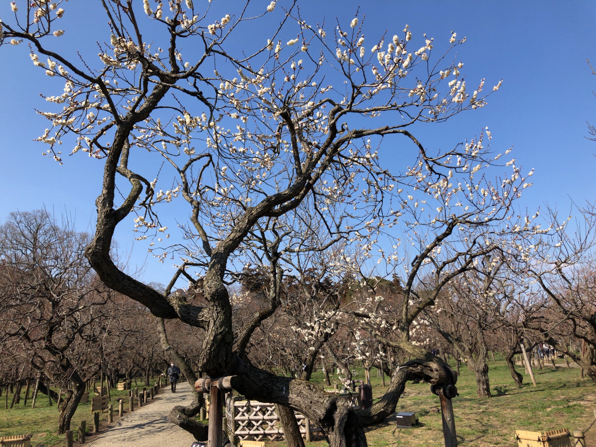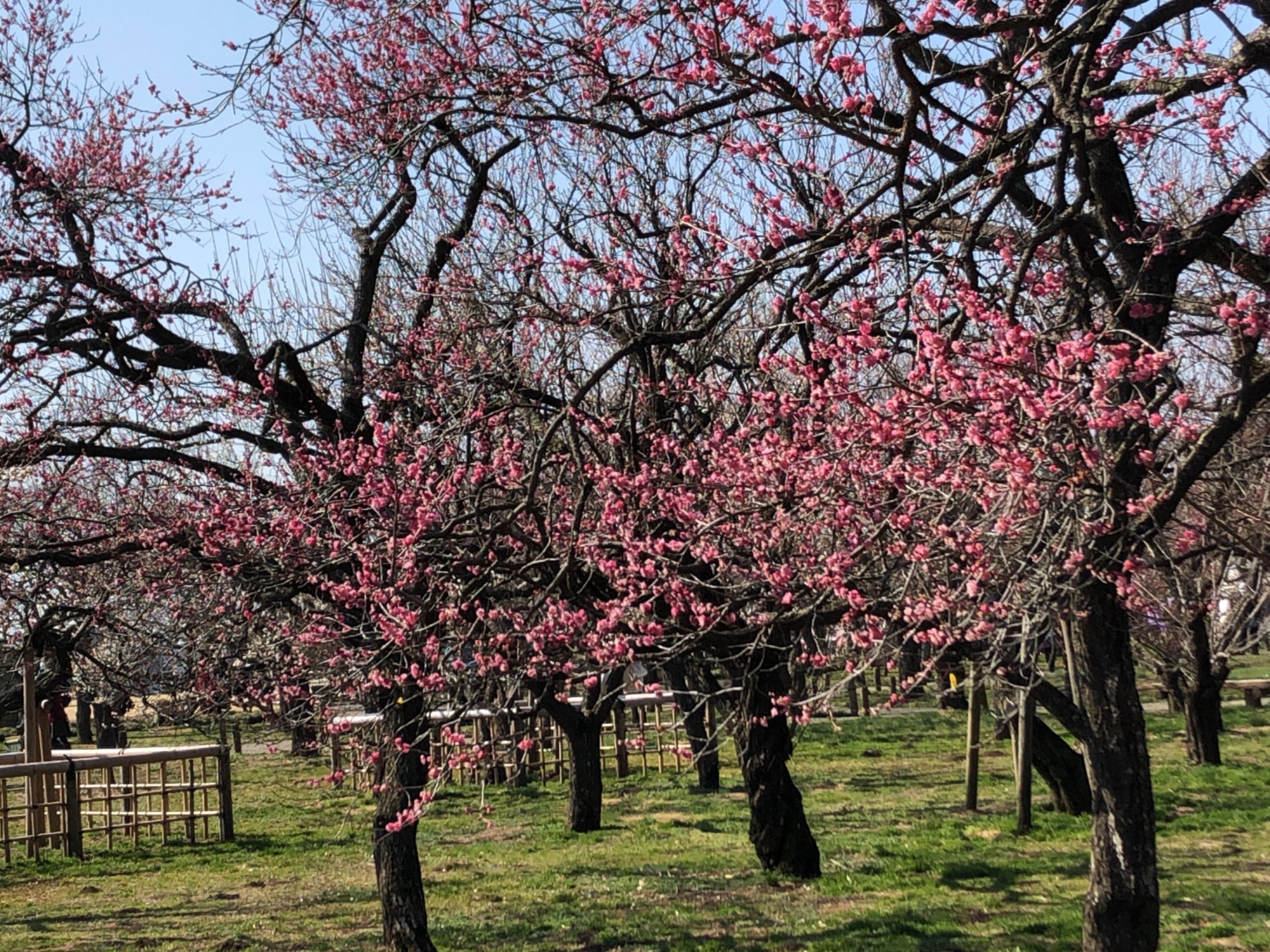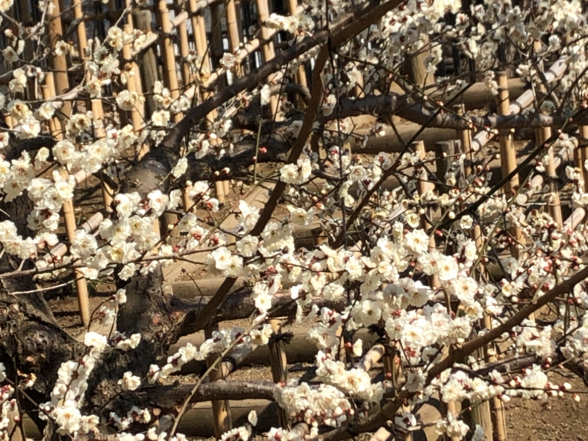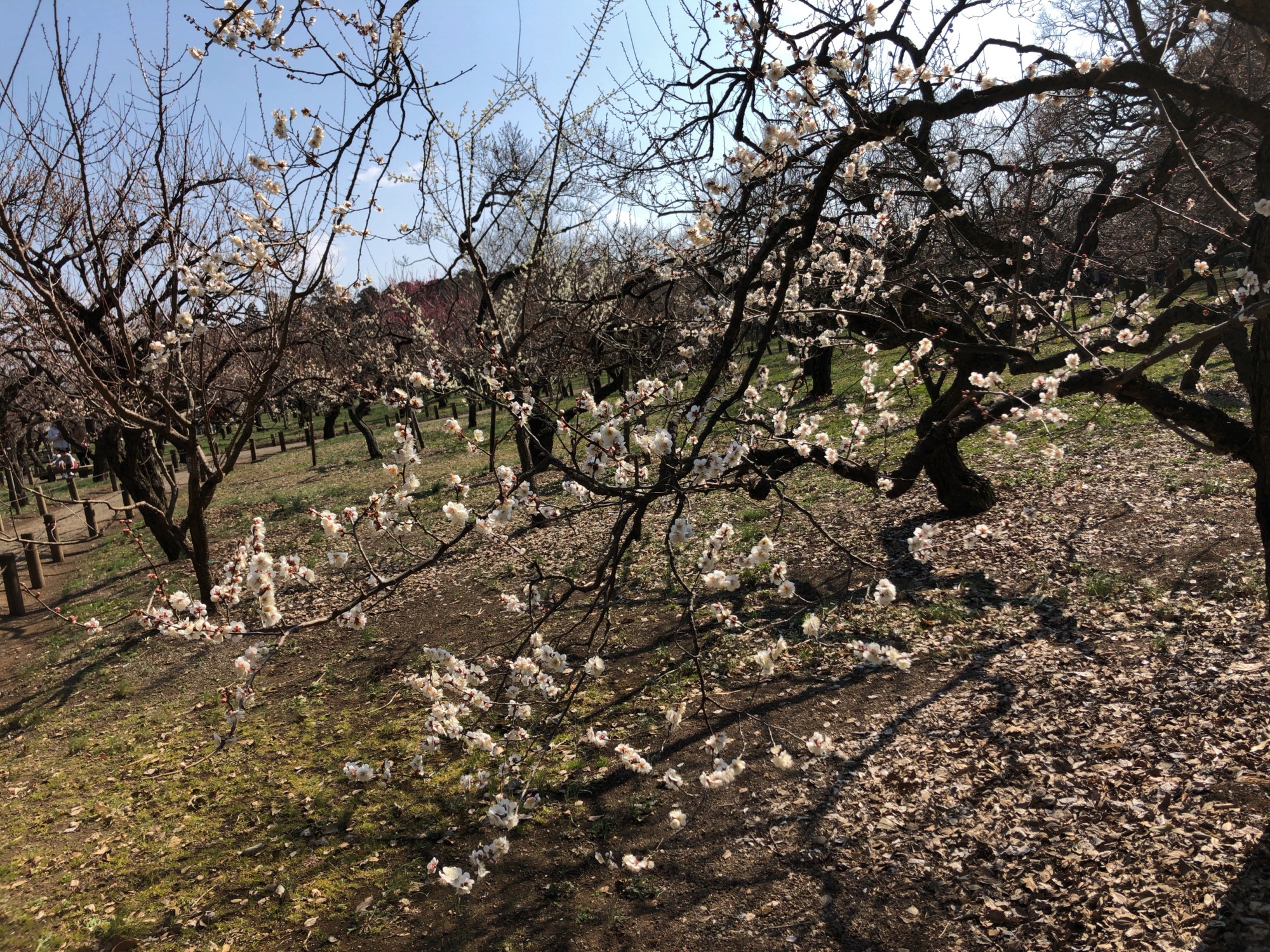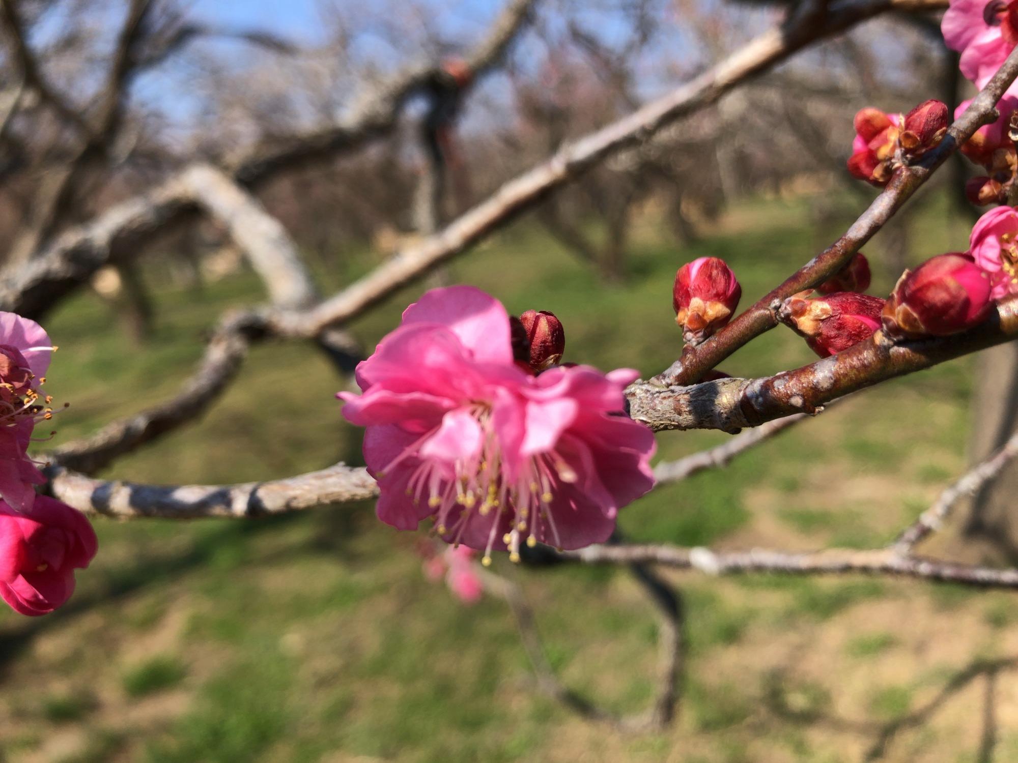で、そこから園の北側の梅林~3,000本も梅があるそうで(あとで見ると開花率は二日前で約26%だそうですが)…まだ蕾の木も多かったのですが、それでも、沢山!