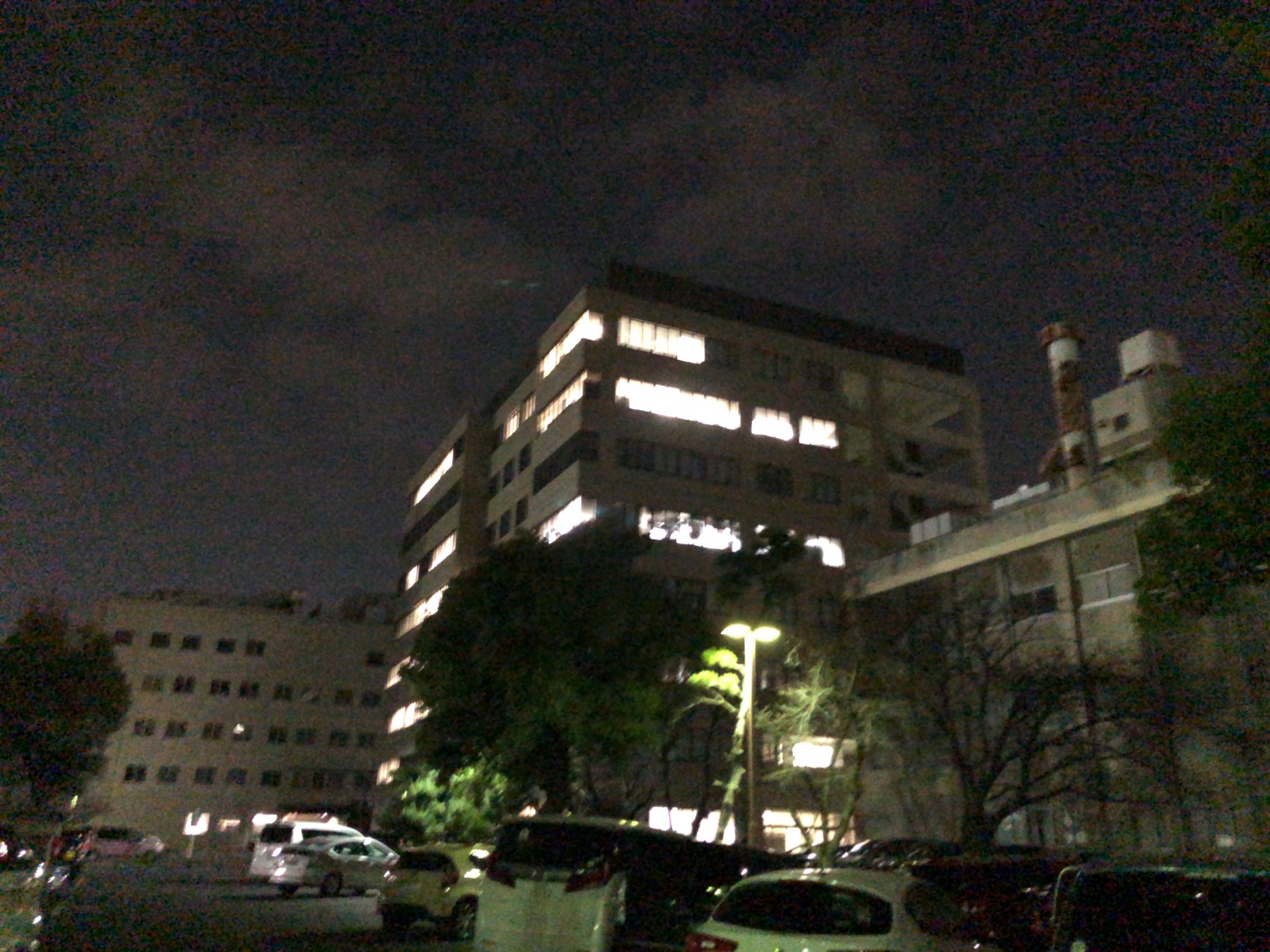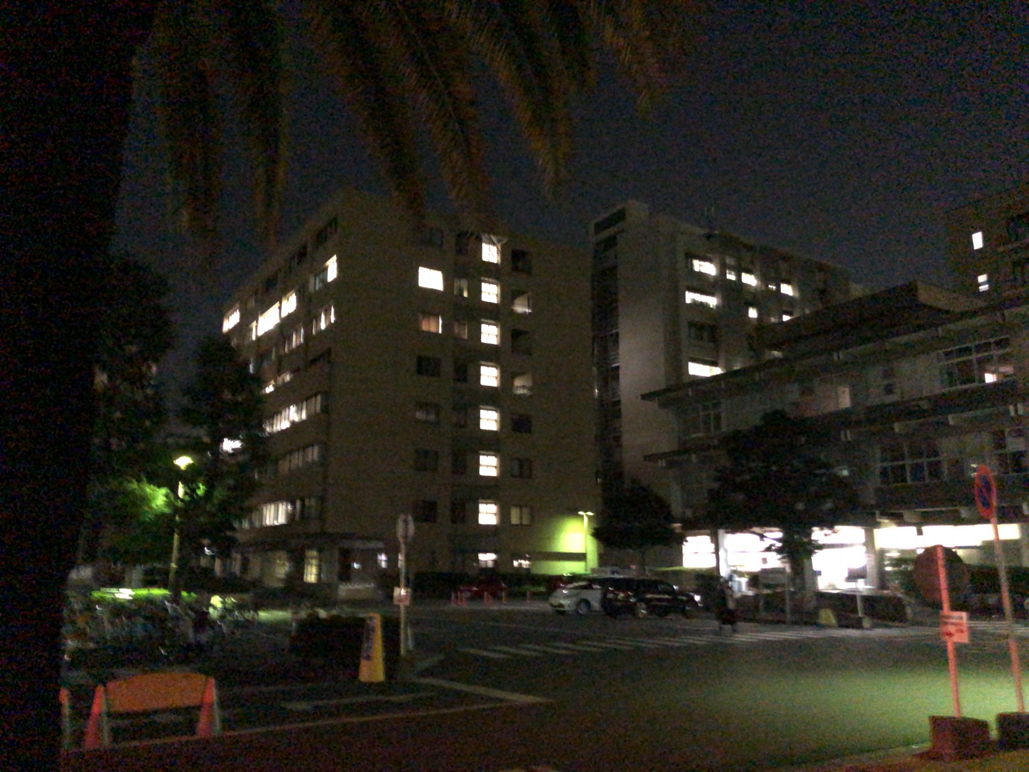 夜は岡山大学鹿田キャンパスで所用・・・時間も無くって、夜のキャンパス!
